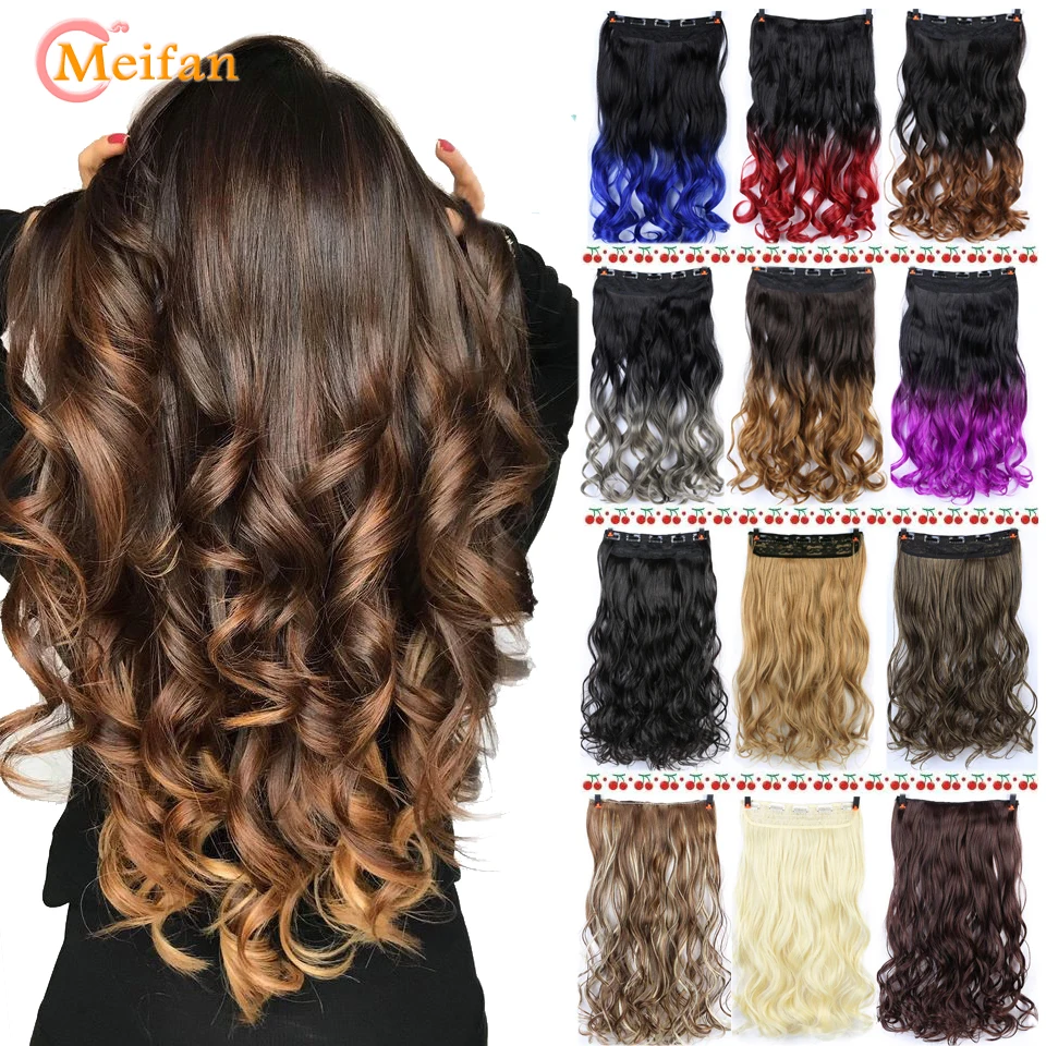 MEIFAN талия 60 см длинные волнистые кудрявые удлинители волос с 5 зажимами натуральные толстые прямые синтетические волосы удлинитель