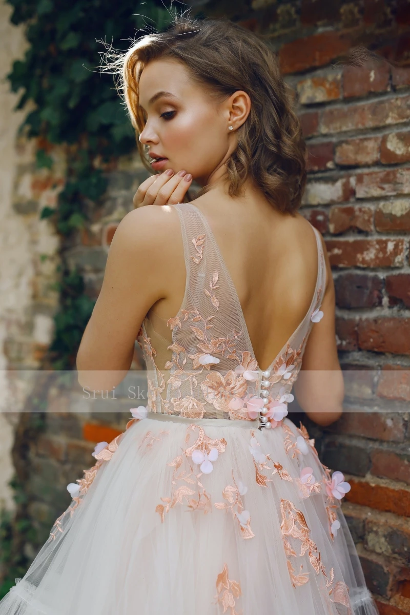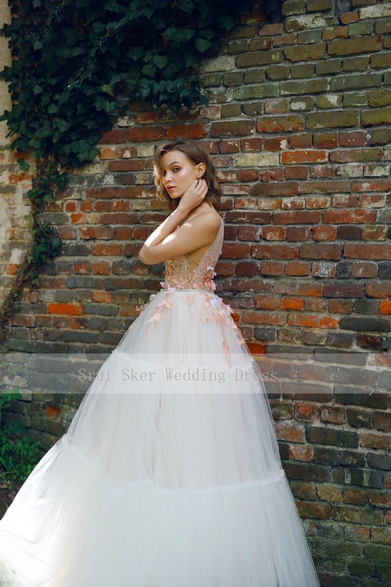 Роскошные свадебные платья белого и розового цвета с V-образным вырезом, трапециевидные Свадебные платья из тюля ручной работы в Дубае, лето 2021, пляжные, морские платья