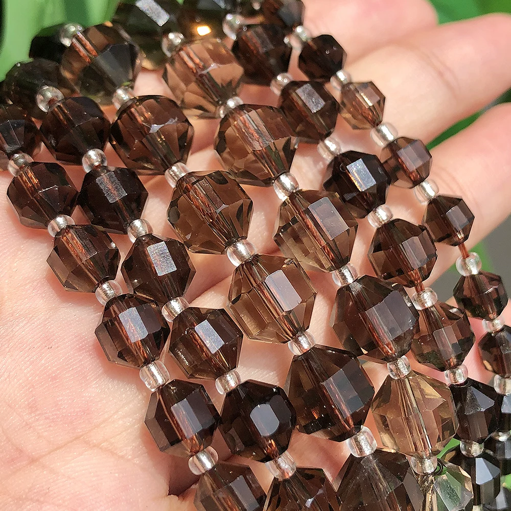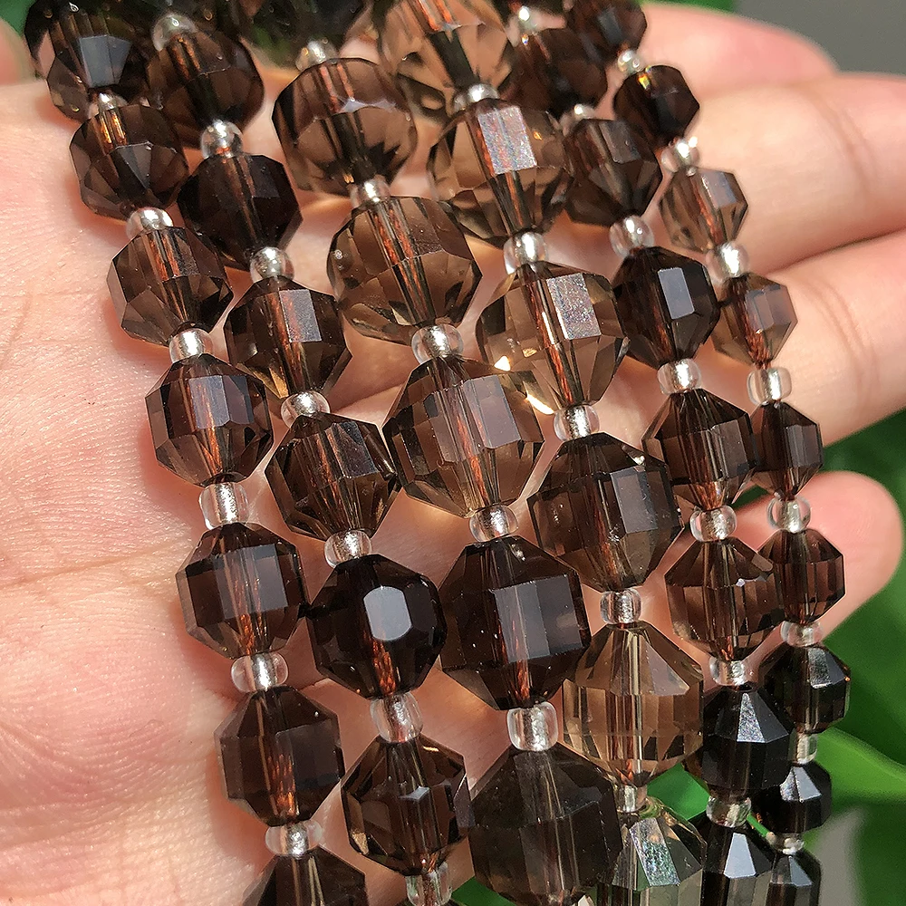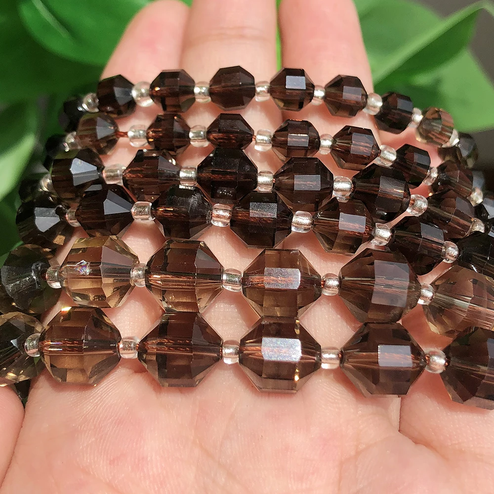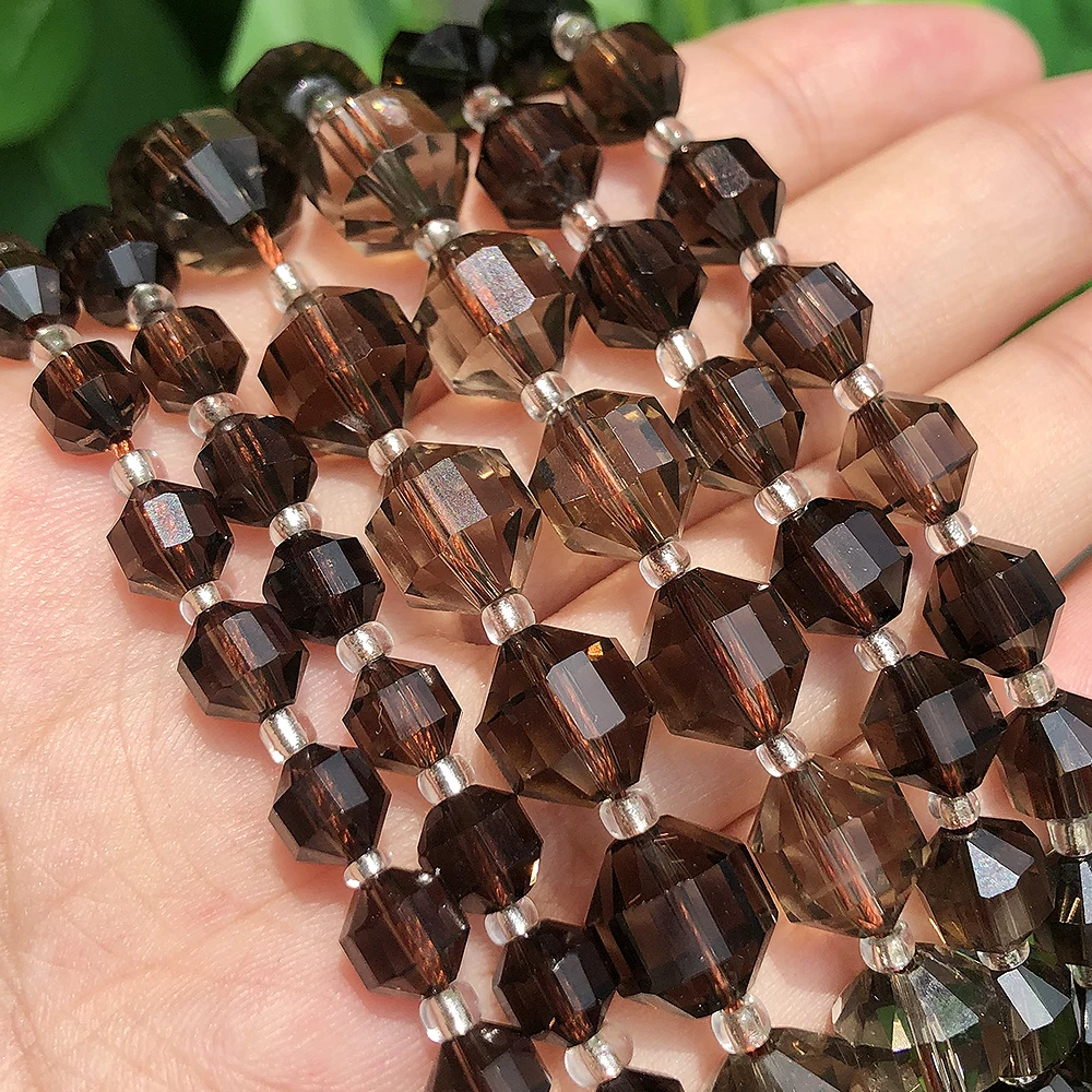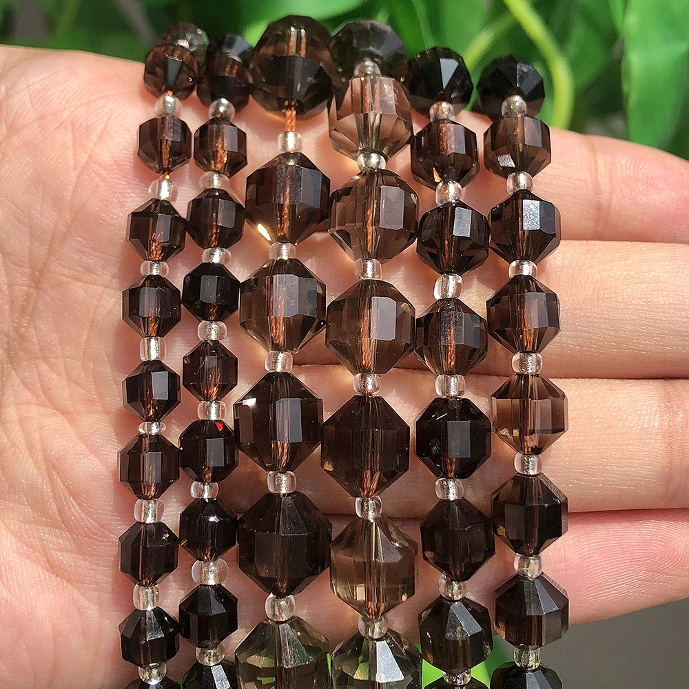 Бусины Из дымчатого кварца ограненный природный камень AAA, двухконусная форма, незакрепленные бусины для самостоятельного изготовления ювелирных изделий, браслет 6 мм, 8 мм, 10 мм, 7,5 дюйма