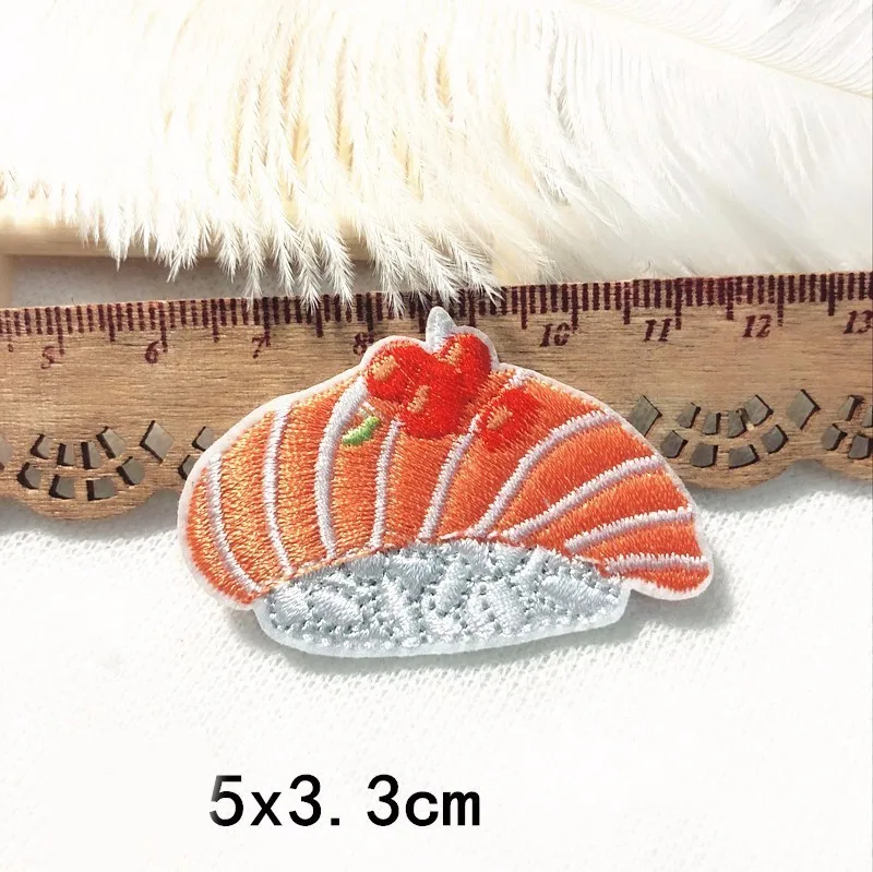 Новое яйцо в виде карлика, суши, хот-дог, пицца, фрукты, авокадо, вышивка, медовый персик, нашивки для одежды, железная детская одежда, Аппликации, значок