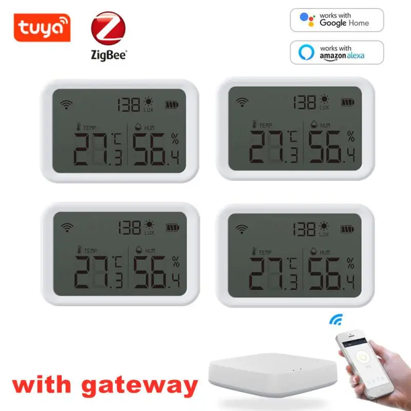 Датчик температуры и влажности Tuya ZigBee, умный дом со светодиодным экраном, работает с Google Assistant и Tuya Zigbee Hub