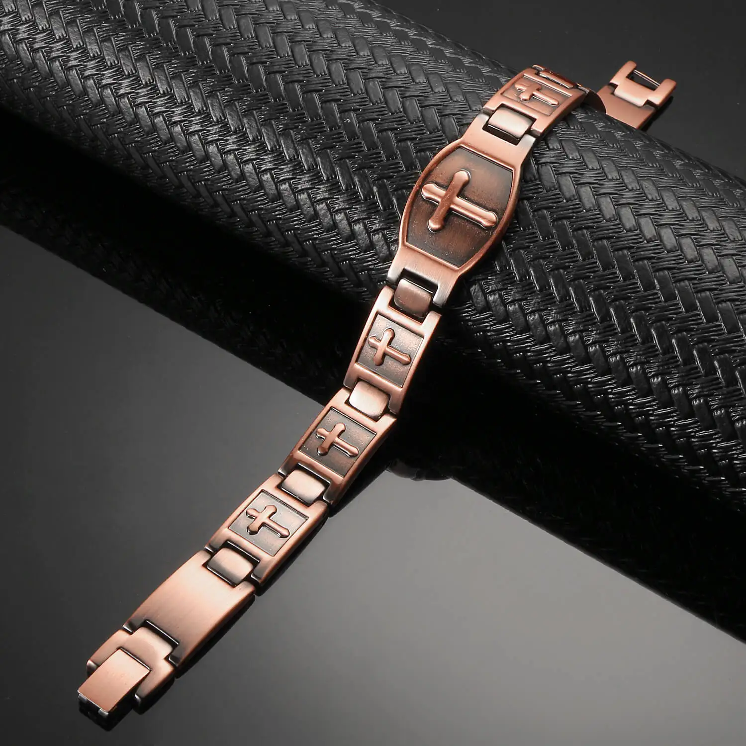 Магнитный браслет с крестом для мужчин, христианская Мода, винтажный медный браслет с подвеской, Иисус Христос новый браслет