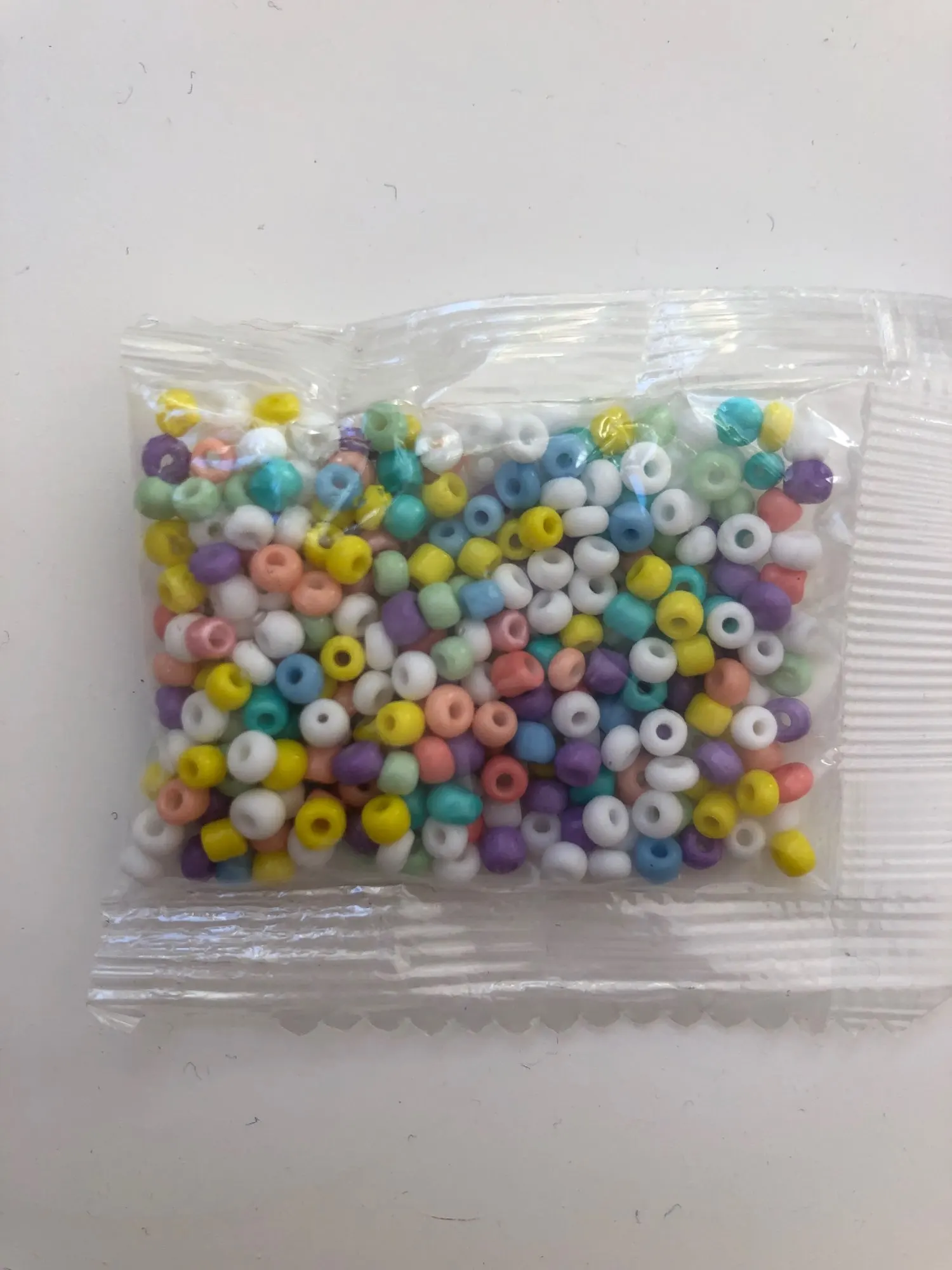 Классные бусины.Не одинаковые,немножко неровные,но это только красит их,как камушки.Пластик,полностью прокрашен хорошо.Брала для дочи (7лет),размер бисера позволяет учиться деткам плести из него фенечки без иглы.Рекомендую.Доставка на Украину быстрая,Укрпочтой