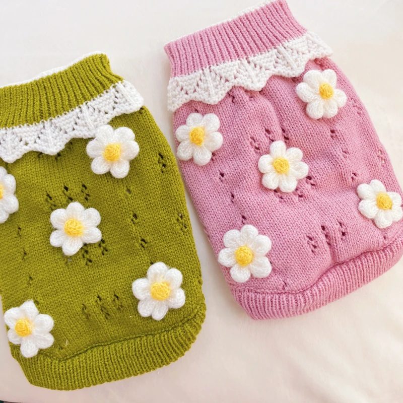 Цветочный кружевной свитер для собак, жилет, рубашка для мальчиков и девочек, модное розовое пальто для щенков и котят для маленьких чихуахуа, куртка для Мопсов на осень и зиму