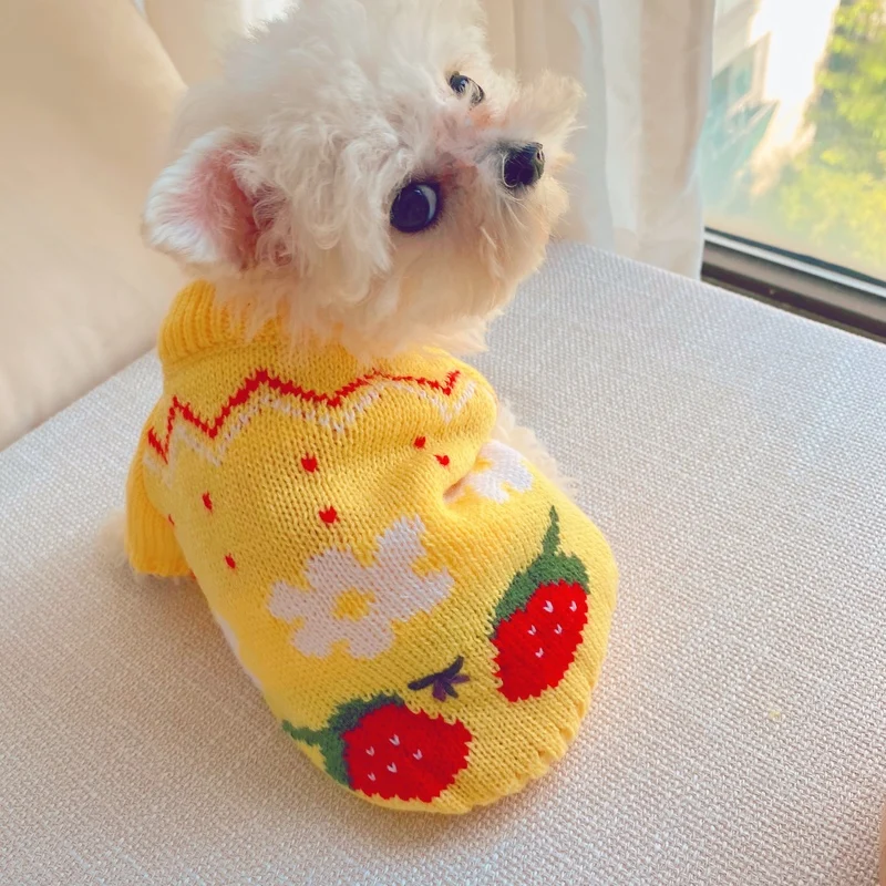 Свитер для собак из хлопка с вишней, вязаный джемпер для французско...