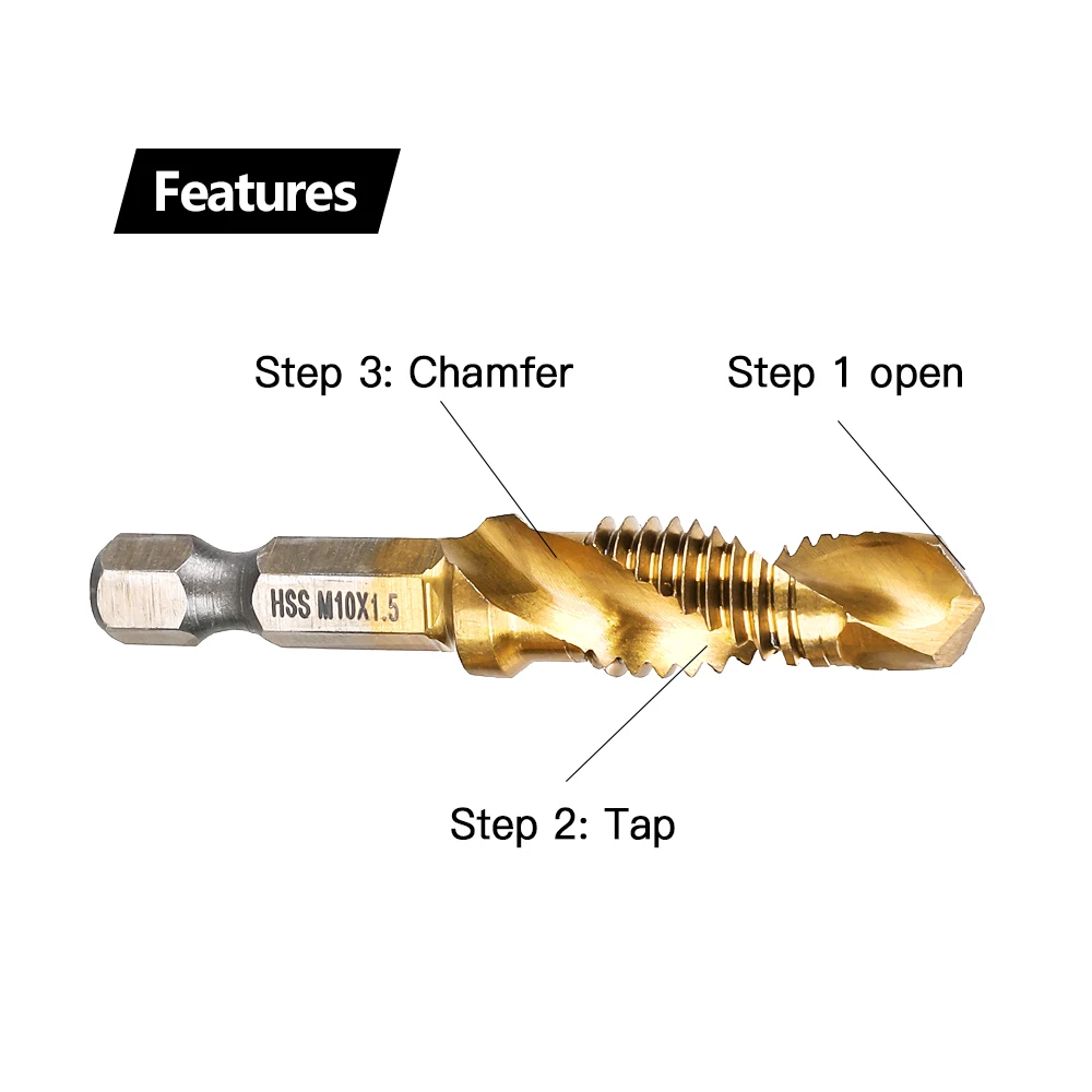 Материал: шестигранный хвостовик с титановым покрытием винт из быстрорежущей стали метрический кран с резьбой (короткий тип с фаской)