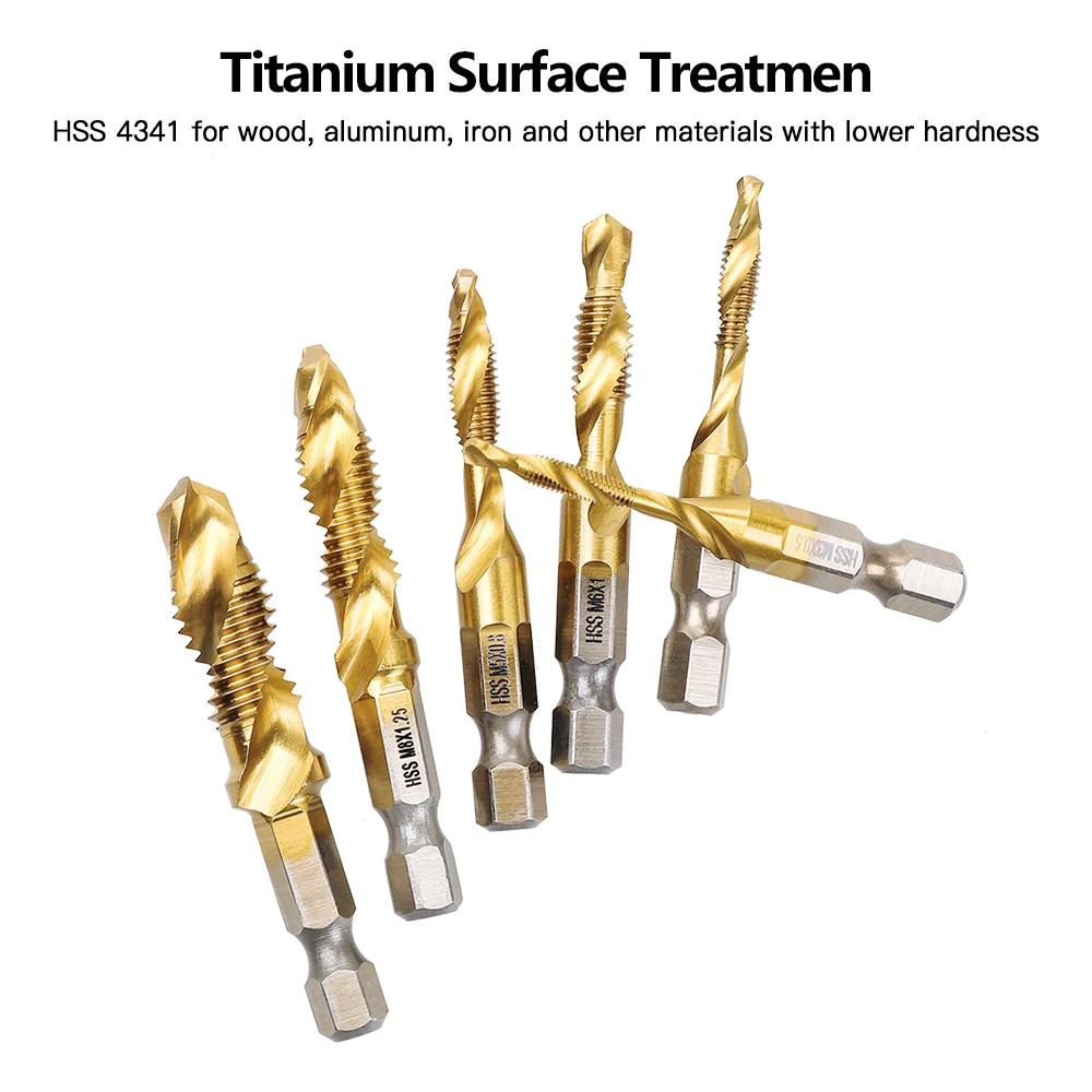 6 шт. шестигранный хвостовик титановый покрытый винт из быстрорежущей стали метрическое сверло под Метчик сверла винтовой станок составной кран M3 M4 M5 M6 M8 M10 ручные инструменты