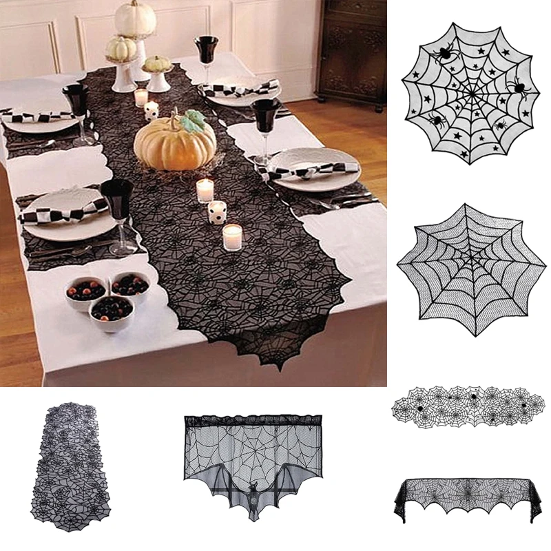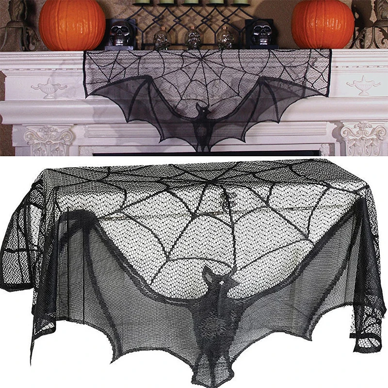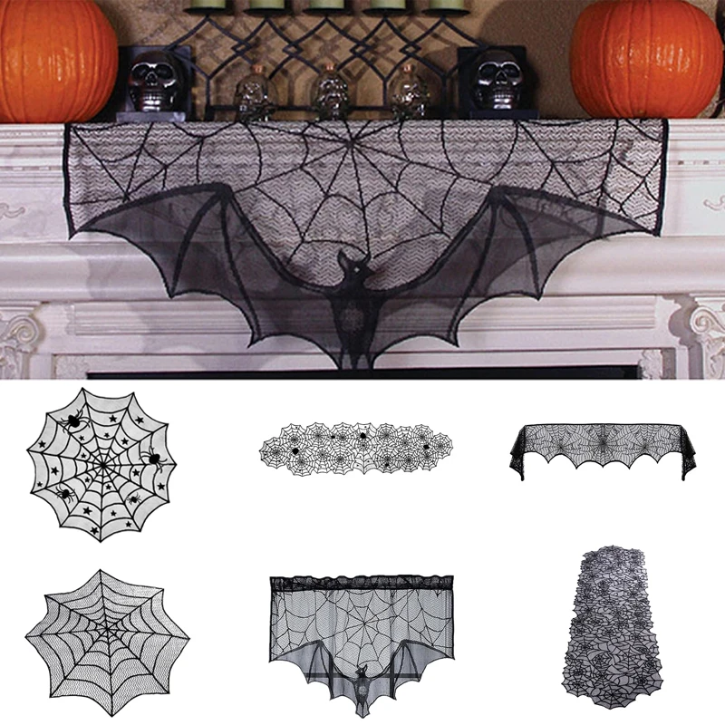 Украшение на Хэллоуин, Черная кружевная скатерть в виде паутины, камин, каминная полка, шарф, стол для праздника, вечеринки, бара, камина, украшение на Хэллоуин