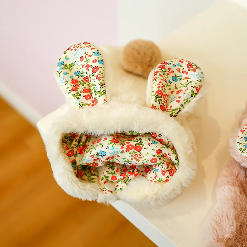 Зимняя одежда для собак, плюшевая куртка в виде кролика, женский костюм, Дизайнерские Пальто для собак с хлопковой подкладкой, толстовки с капюшоном для щенков и кошек, одежда