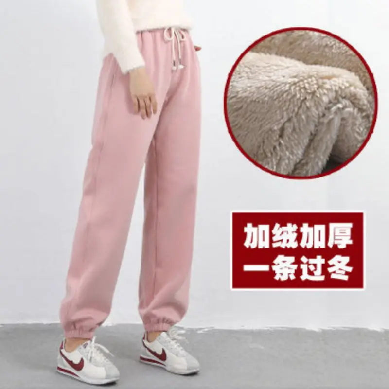 Осенне-зимние кашемировые утолщенные кашемировые теплые брюки из ягненка для спорта и отдыха свободные бархатные золотистые брюки Harlan для женщин