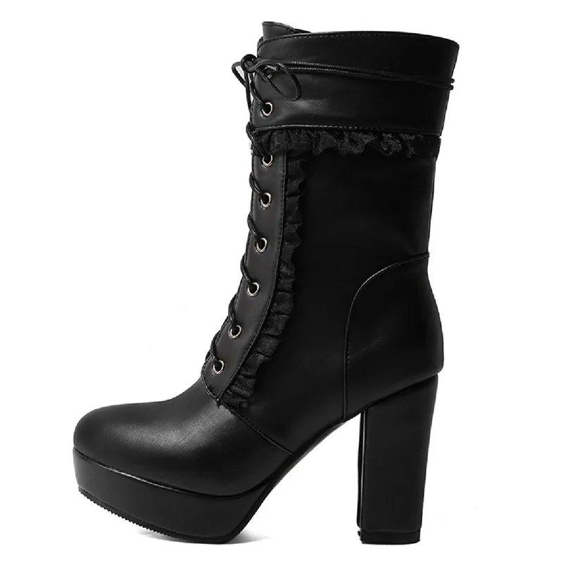 Женские ботинки до середины икры, на платформе, на шнуровке, розовые, белые, большого размера 48