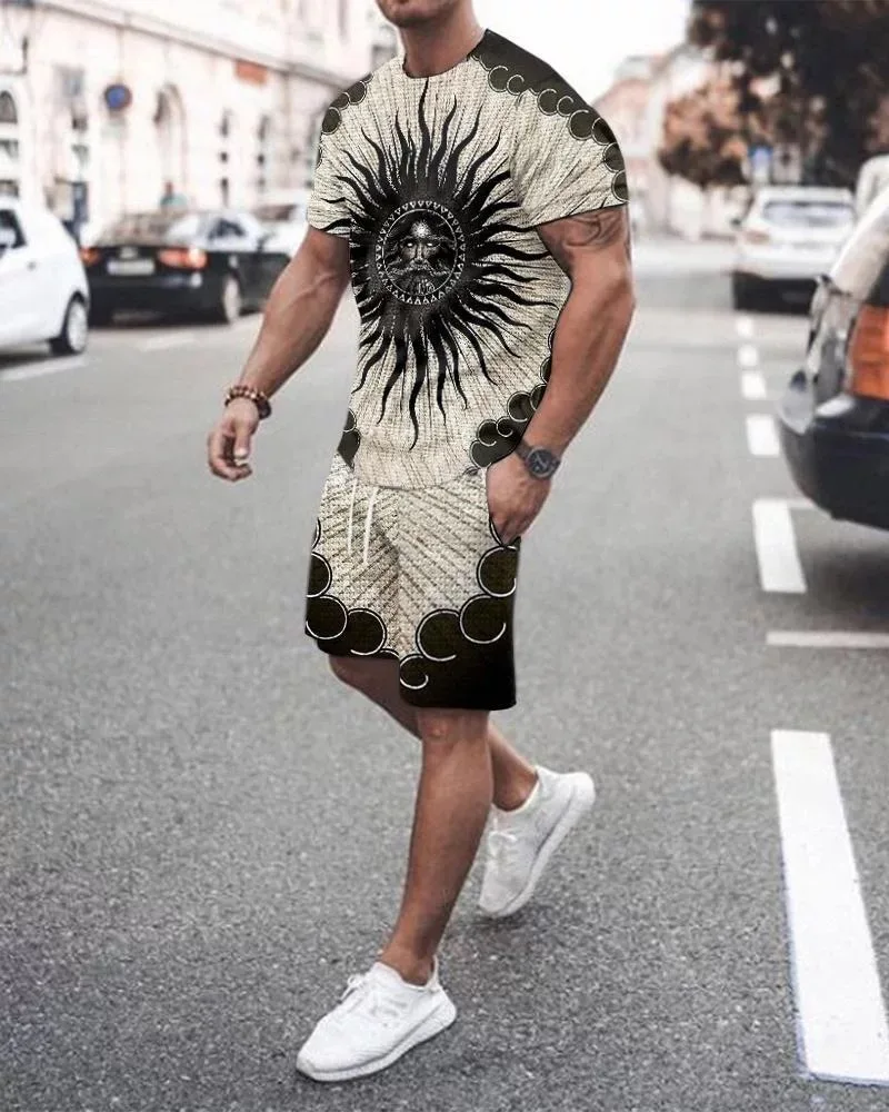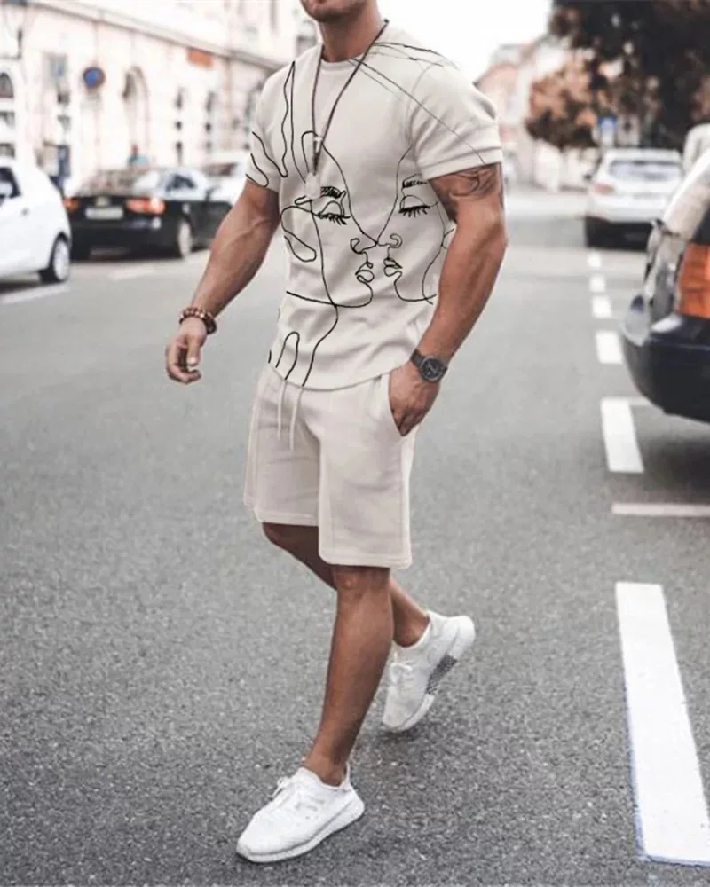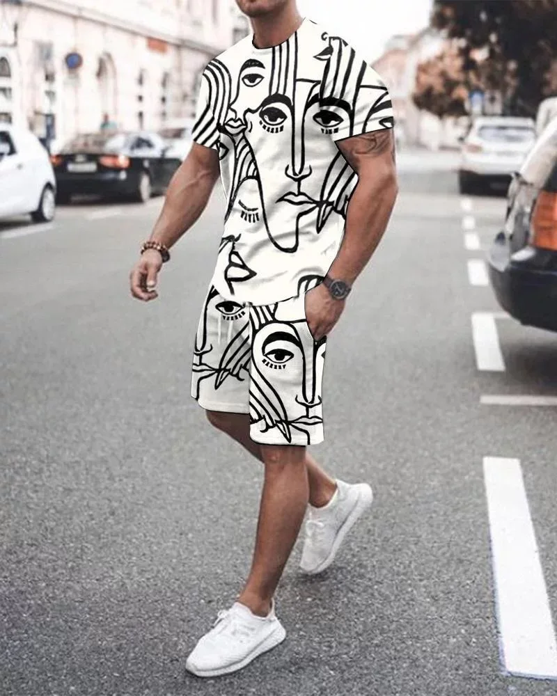 Мужской комплект из 2 предметов, футболка с 3D принтом лица и шорты, пляжный костюм, повседневный спортивный костюм в стиле хип-хоп