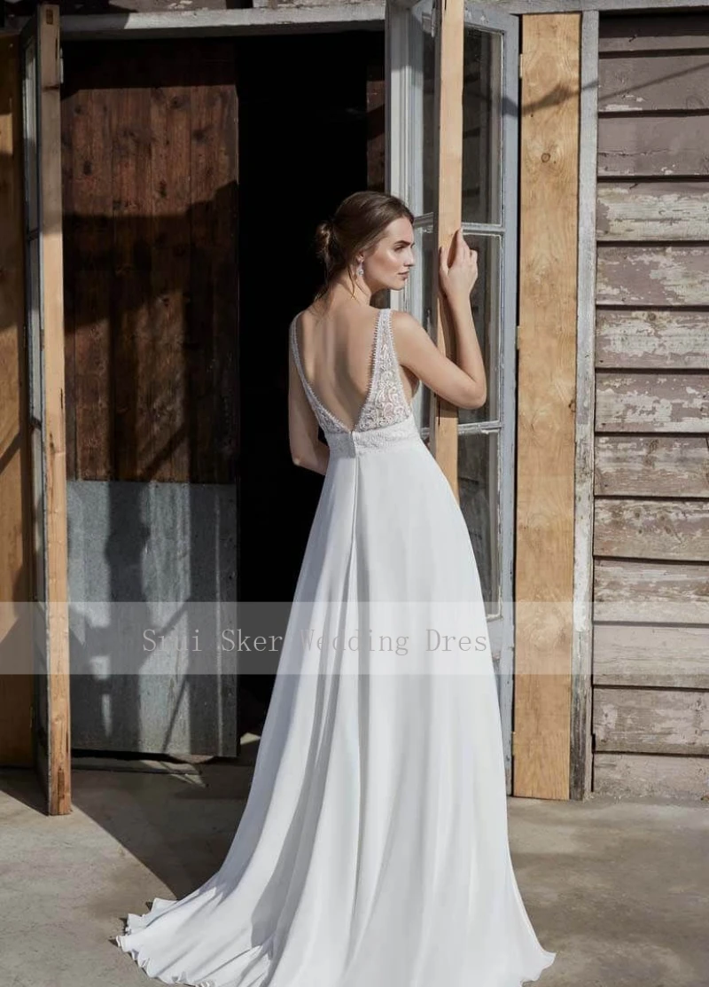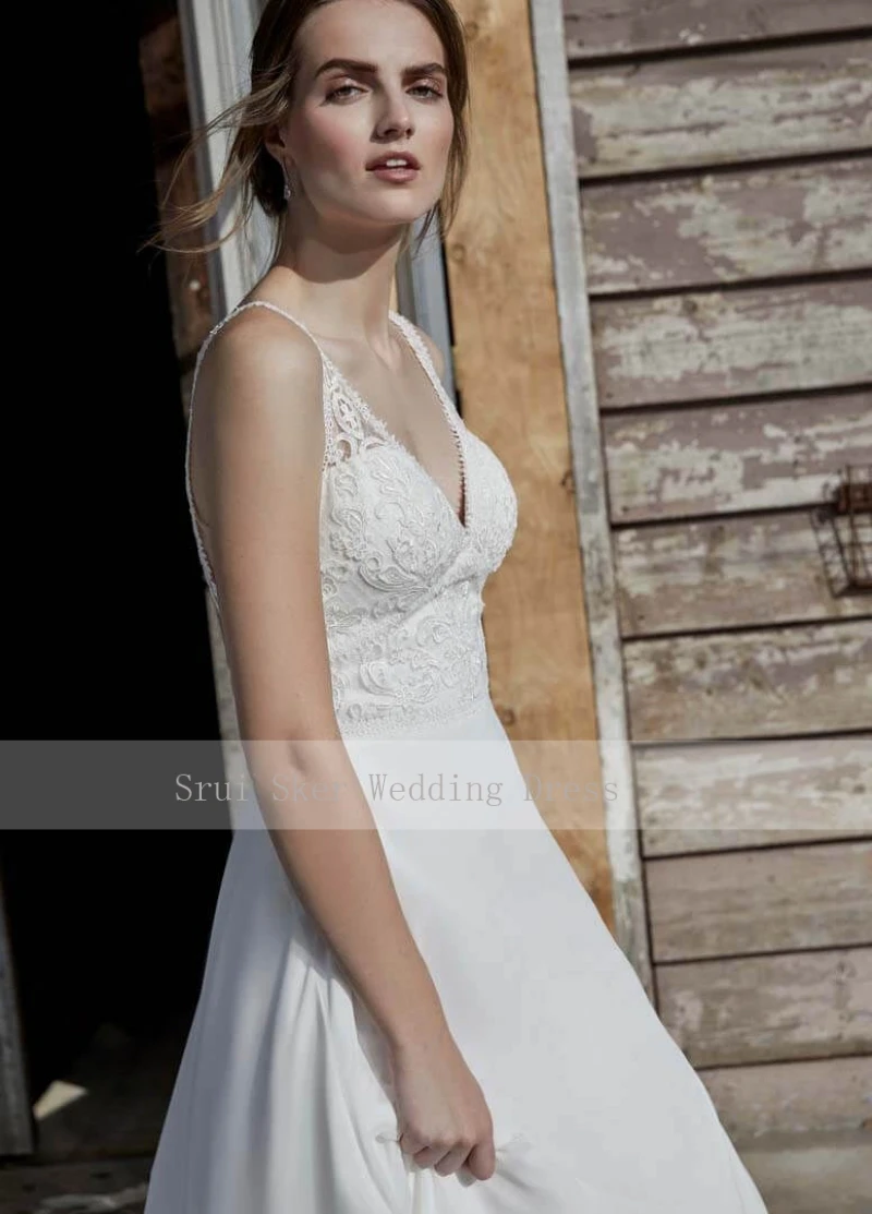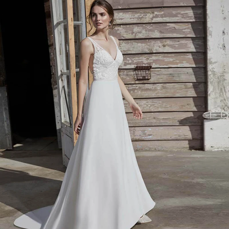 Лидер продаж, платье невесты без рукавов с V-образным вырезом, а-силуэт, кружевные свадебные платья, свадебное платье со шлейфом, индивидуальный пошив