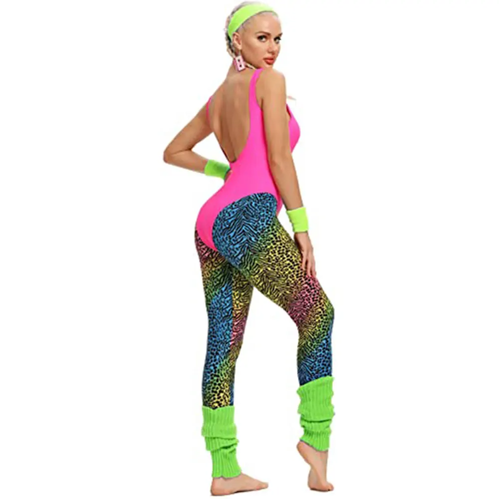 Женское боди в стиле ретро 80-х90-х годов, Цельный купальник с высоким вырезом, купальный костюм, костюм на Хэллоуин, бикини, сексуальный купальник ярко-розового цвета