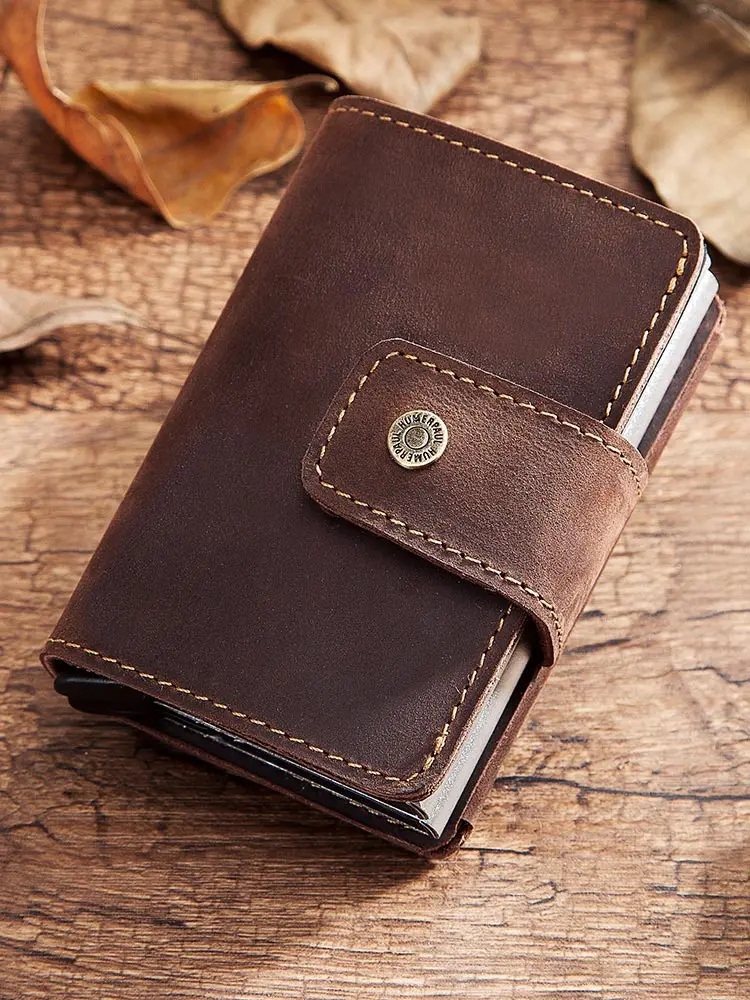 Простой кошелек из натуральной кожи с RFID-блокировкой для мужчин и женщин, винтажный Держатель для визиток и кредитных карт, бумажники
