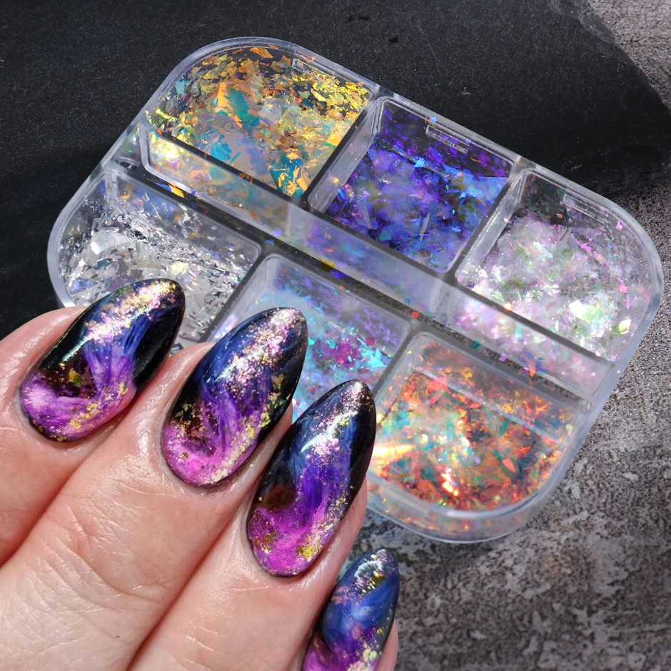 Светоотражающие блестки хлопья гвоздь, опал, огненный порошок, дизайн ногтей 2021, зимний голографический маникюр набор блесток CHXR