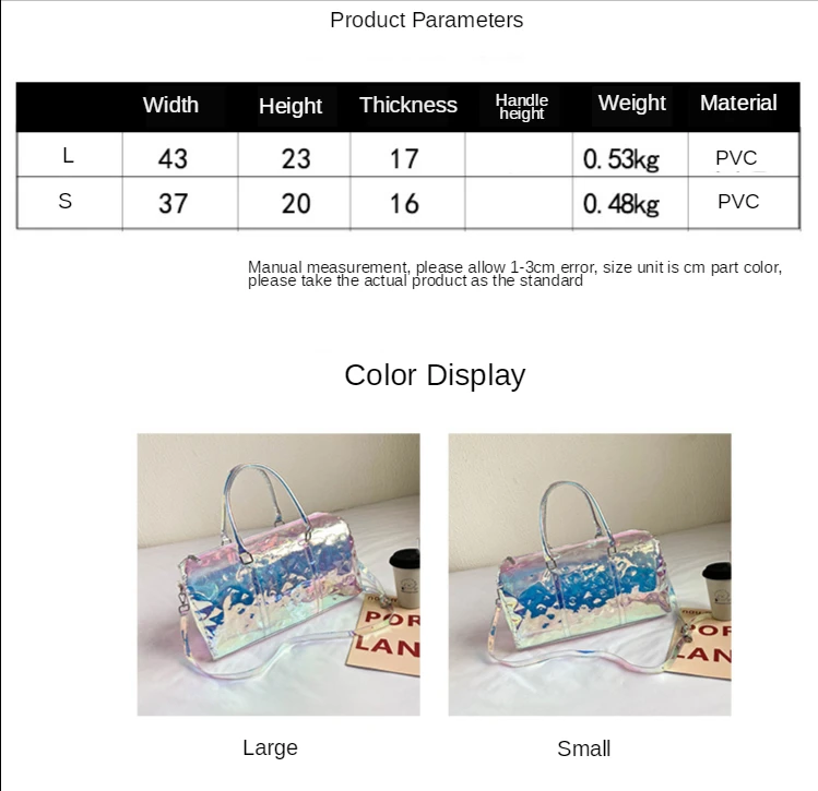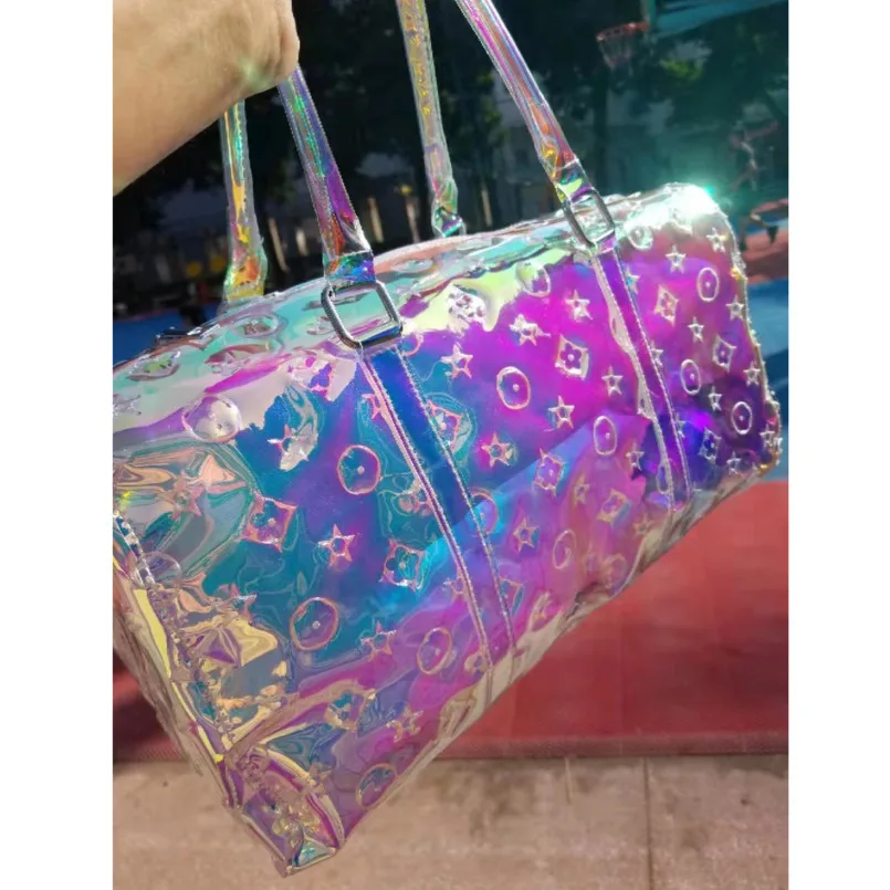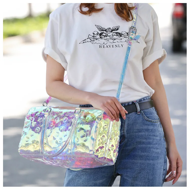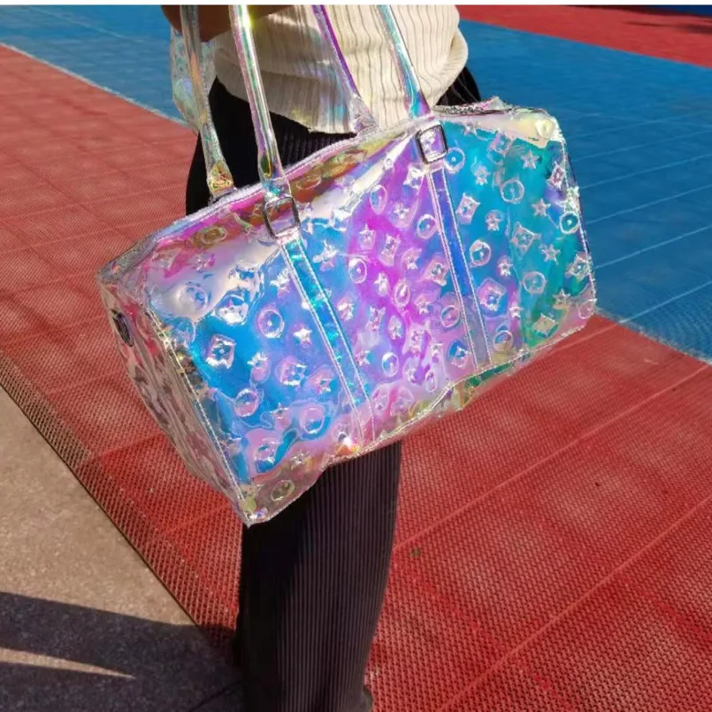 Голографическая прозрачная сумка, женская сумка, женская сумка, Женская дорожная сумка для спортзала 2021, летняя сумка из ПВХ для багажа, вместительная сумка с V-образным вырезом