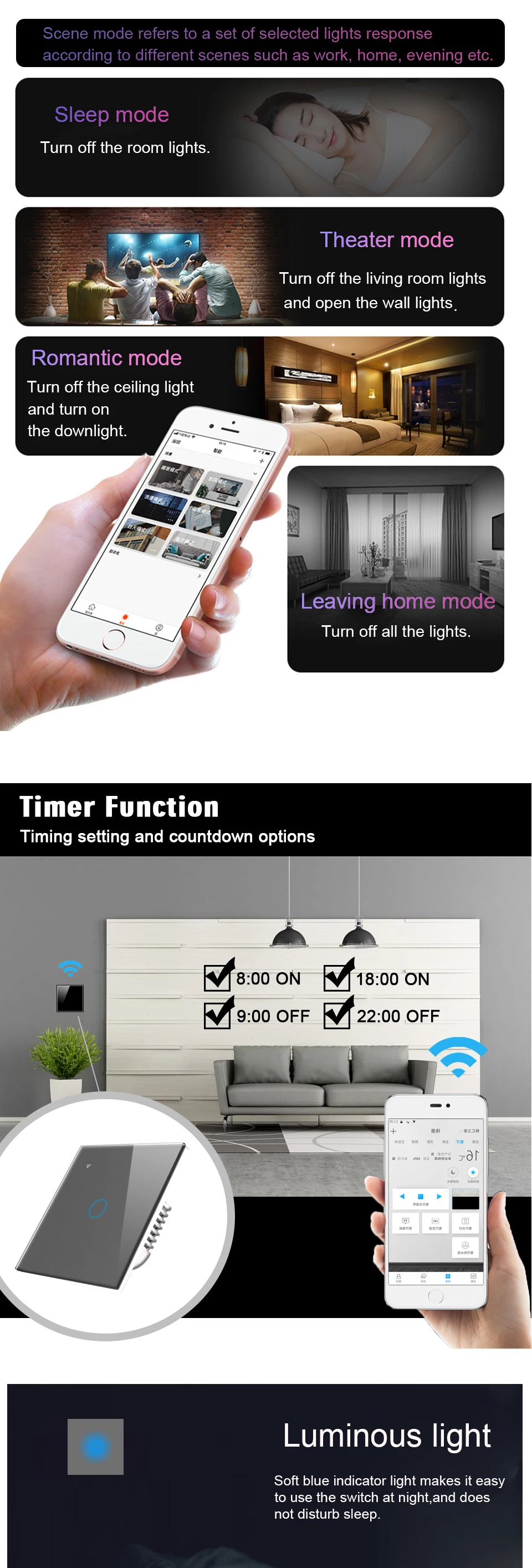 D. Настроить свой собственный Scence: один ключ контролирует несколько переключателей. После того, как вы покинете дом, автоматически выключите его переключатели. Экономьте время.