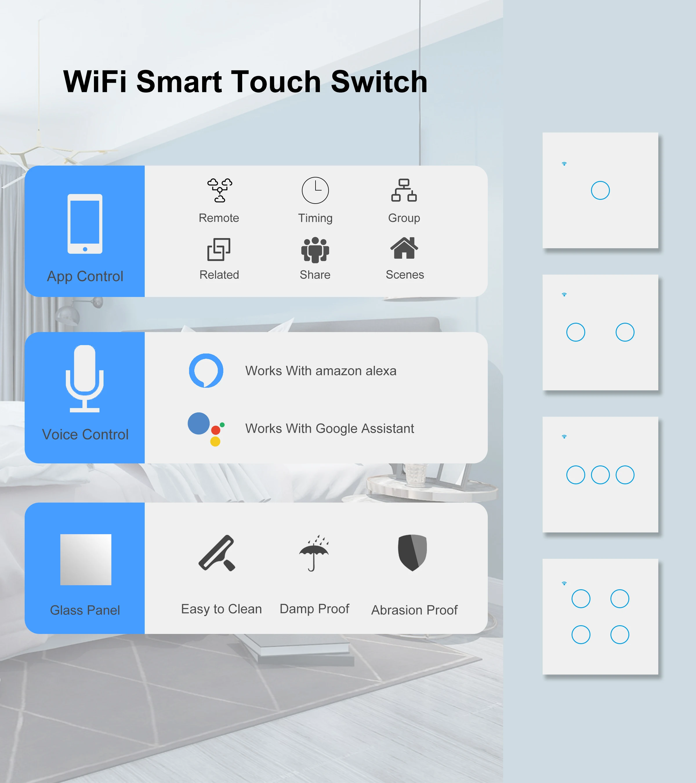 Настенный сенсорный выключатель с поддержкой Wi-Fi, 220 В