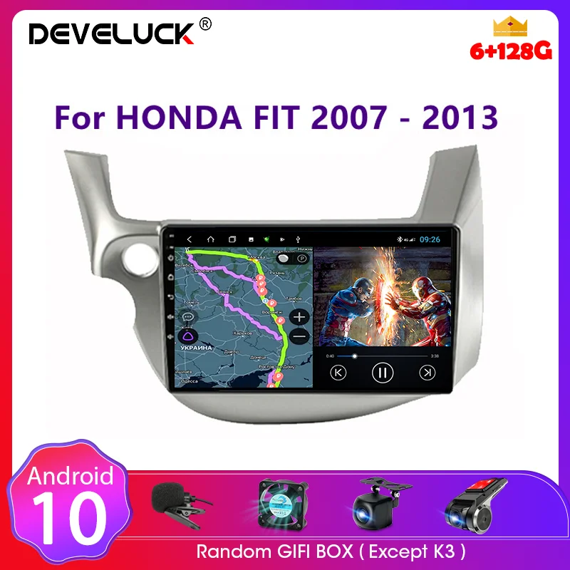 Автомобильное радио, мультимедийный видеоплеер, 10 дюймов, для HONDA FIT JAZZ 2007-2013, Android 10, 2 din, GPS-навигация, 4G Net Carplay, автомобильная стереосистема, DVD