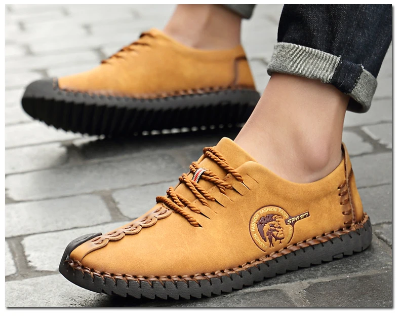 Лоферы мужские кожаные с ручной строчкой, удобные, мягкая желтая об...