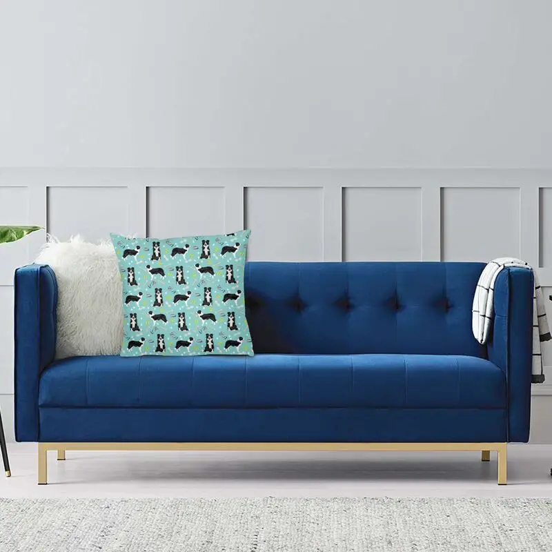 Наволочка с рисунком границы колли, теннисных мячей, квадратная декоративная наволочка для домашних животных, собаки, яркая наволочка, декоративная подушка для автомобиля, двусторонняя печать