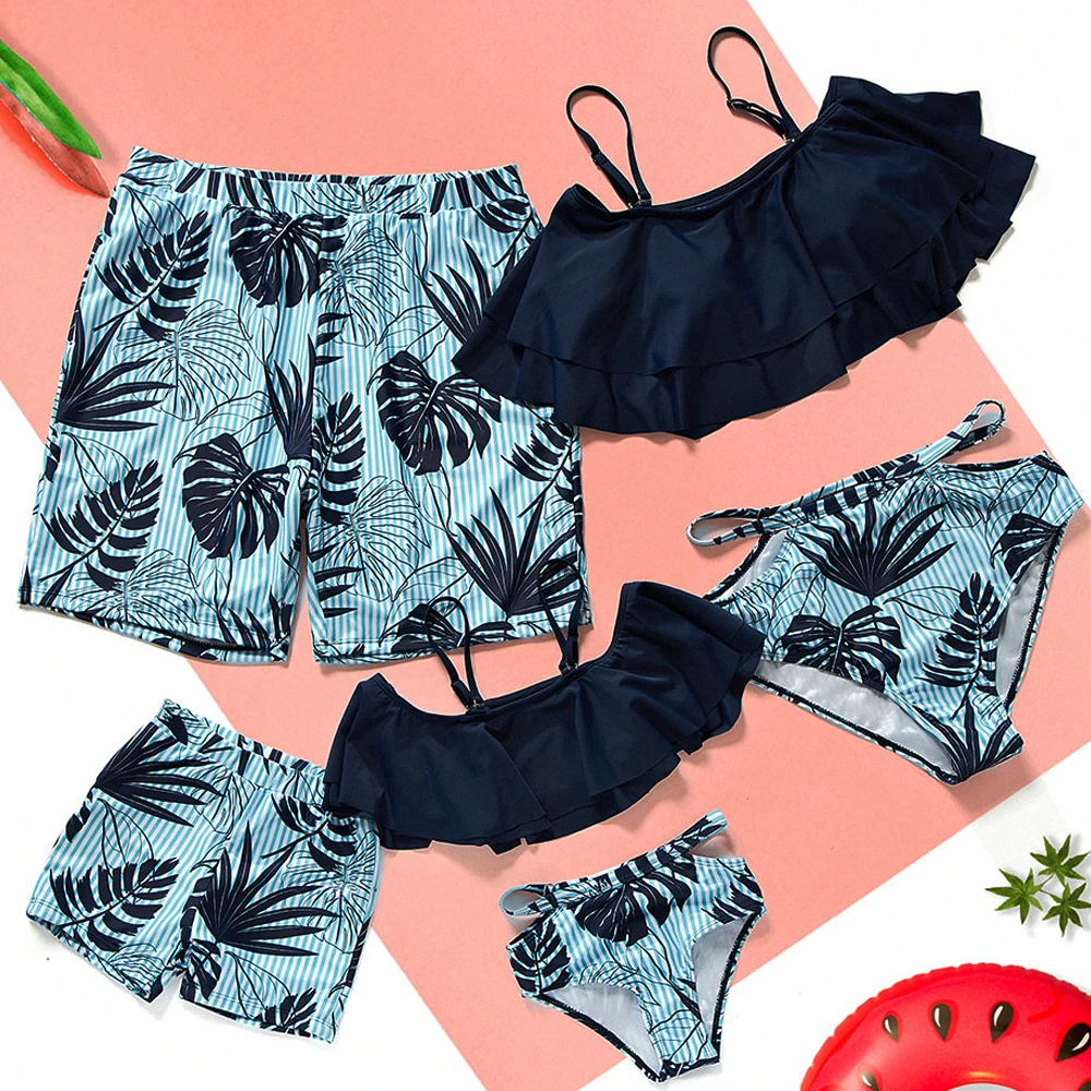 Семейные одинаковые купальники с принтом листьев, сексуальный купал...