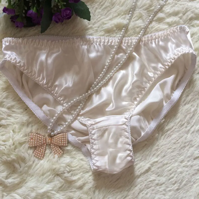 Женское нижнее белье 100%, сексуальные бесшовные трусики из натурального шелка, женские трусы, однотонное атласное нижнее белье, удобное нижнее белье