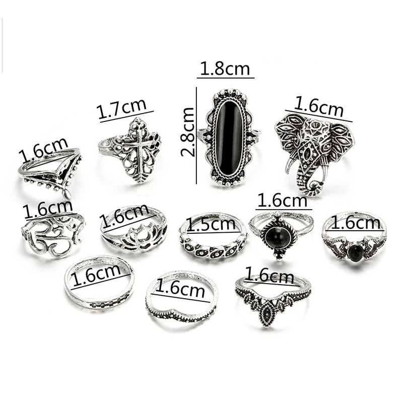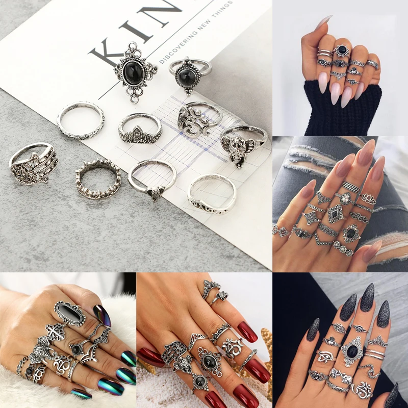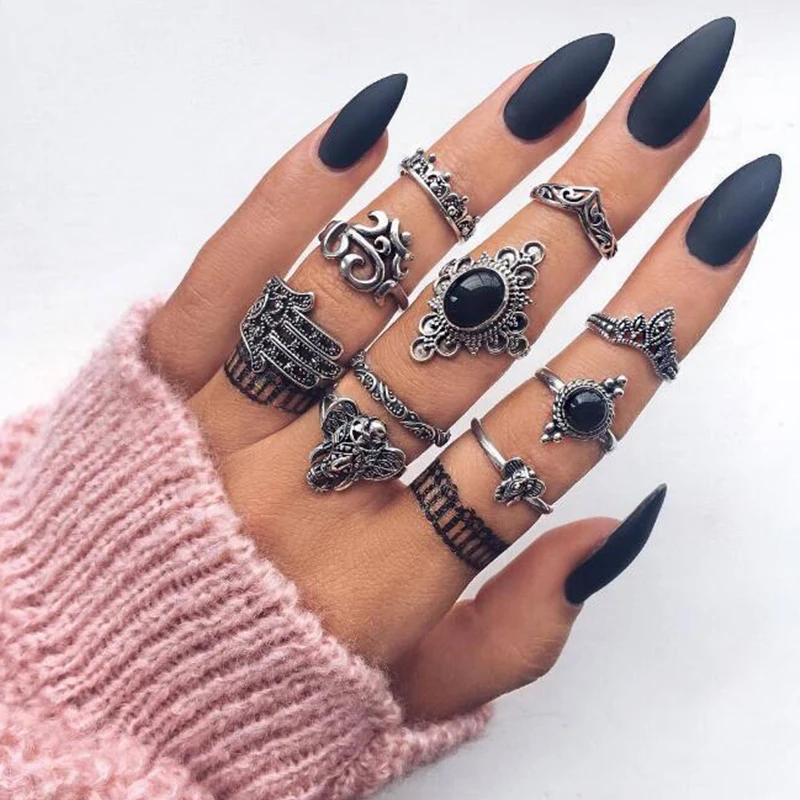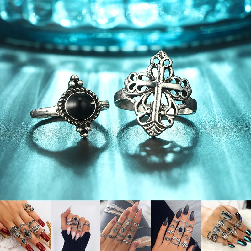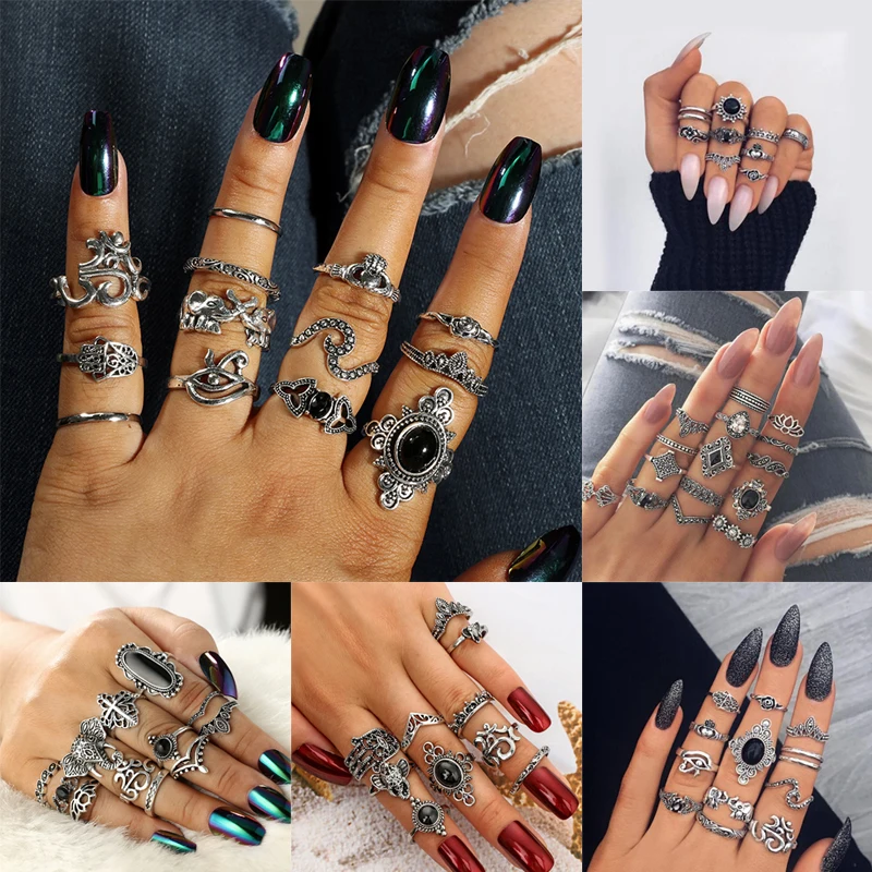 Модный комплект колец для женщин Бохо миди Фатима Винтаж гравировка Тотем Кристалл геометрические кольца на палец девушки ювелирные аксессуары в стиле панк