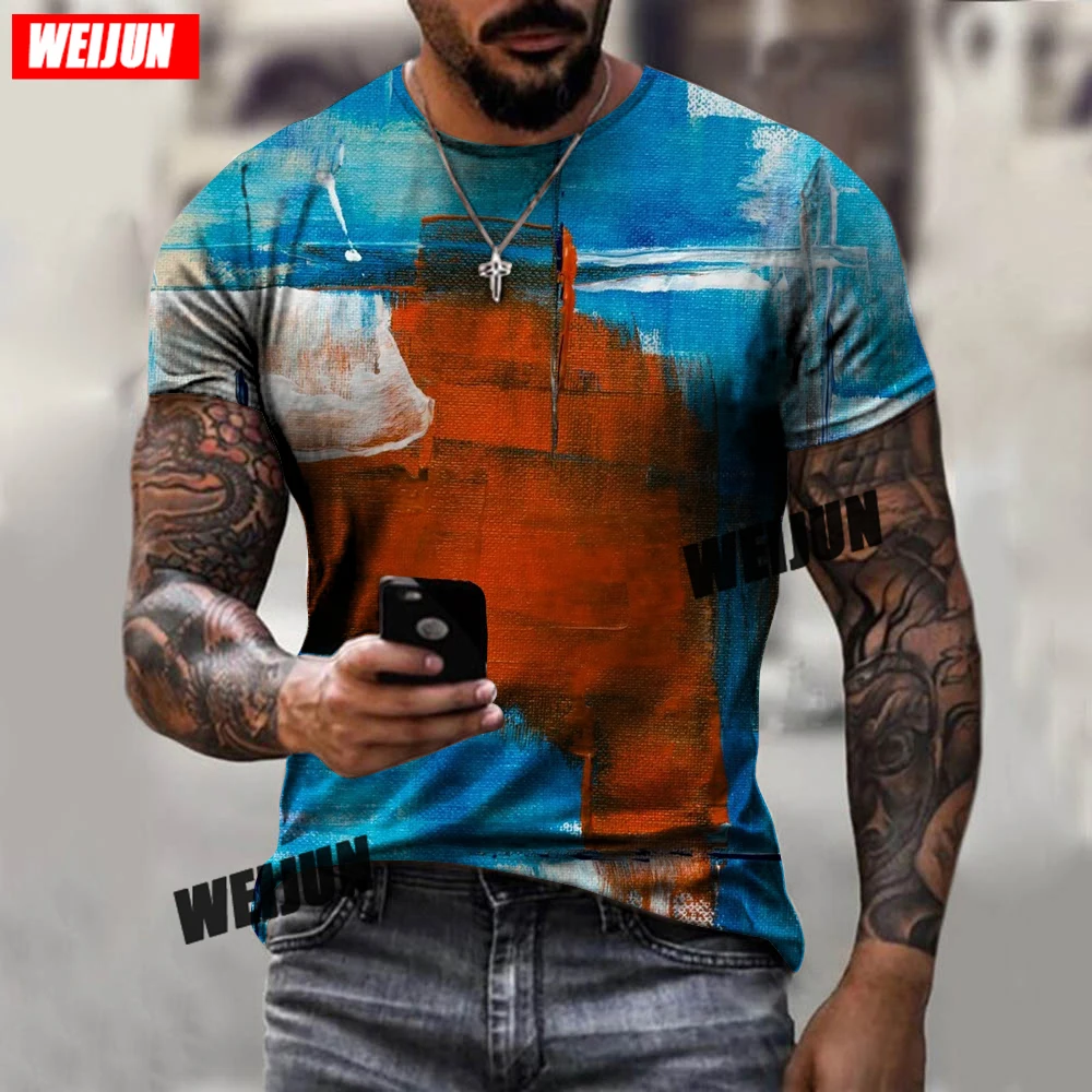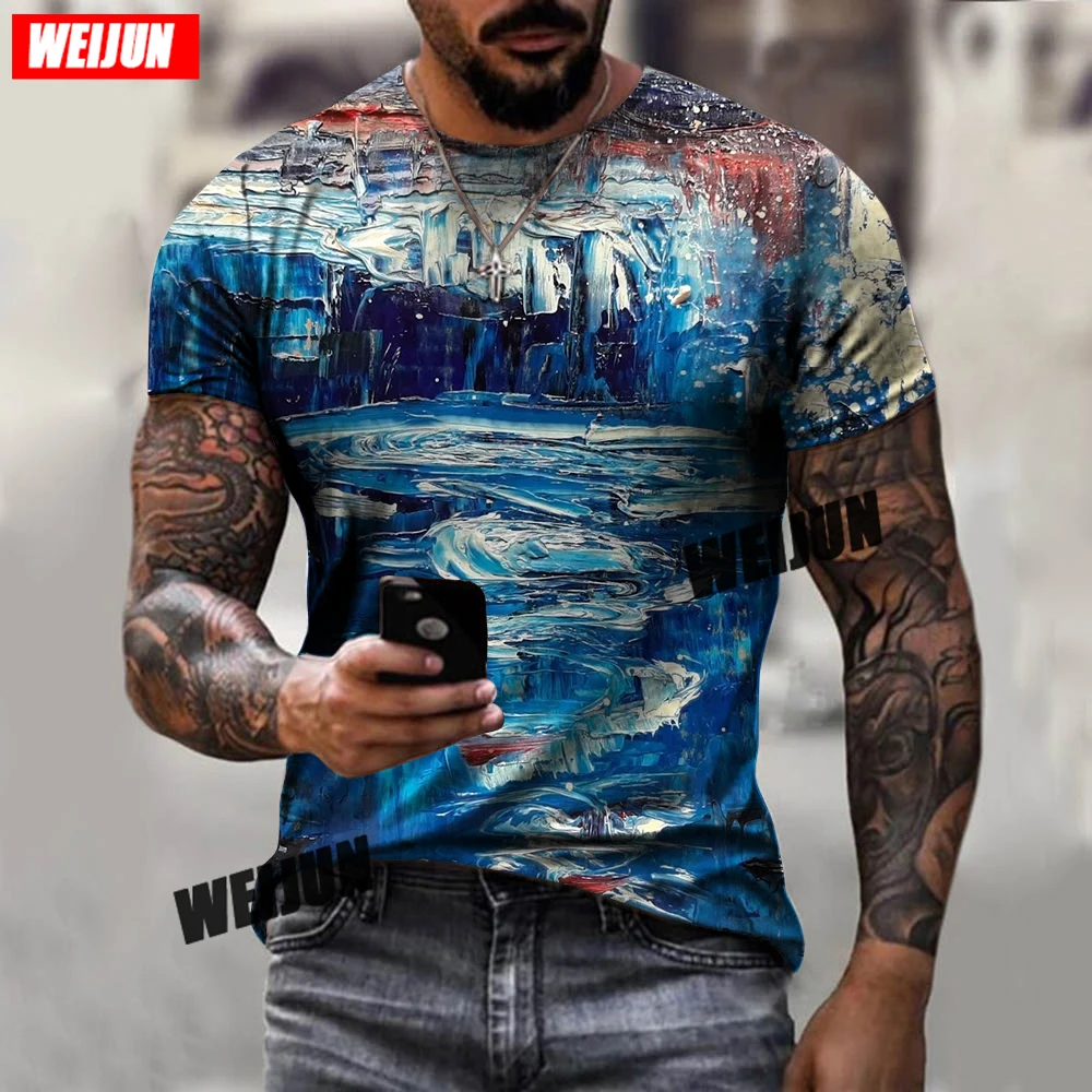 Новинка 2021, красочная футболка без брелка для мужчин и женщин, 3D Футболка с принтом масляной живописи, Мужская футболка, летняя футболка