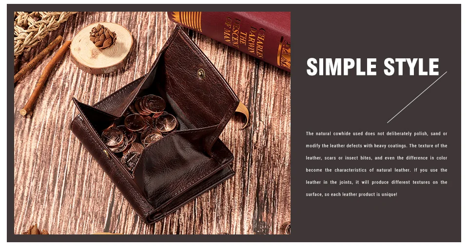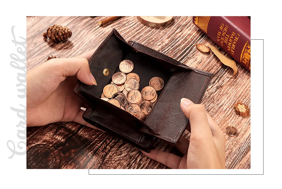 Мужской бумажник KAVIS, винтажный короткий кошелек из коровьей кожи...