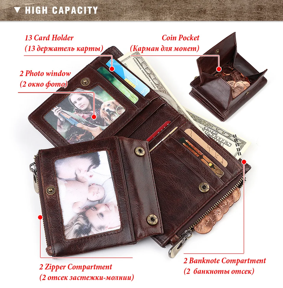 Мужские кошельки RFID из бычьей кожи, складной винтажный короткий б...