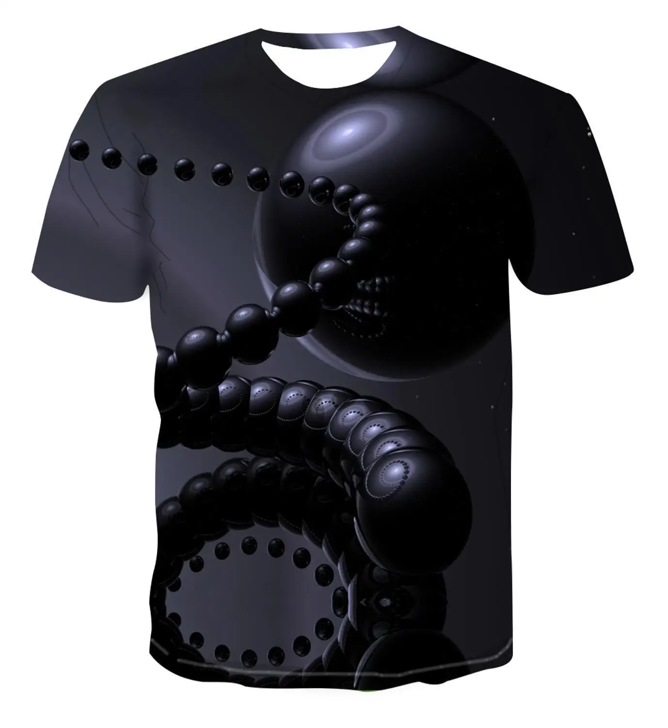 Новинка лета 2021, модная мужская 3D футболка, топ, Мужская крутая Геометрическая креативная 3D футболка в стиле хип-хоп, искусственная кожа