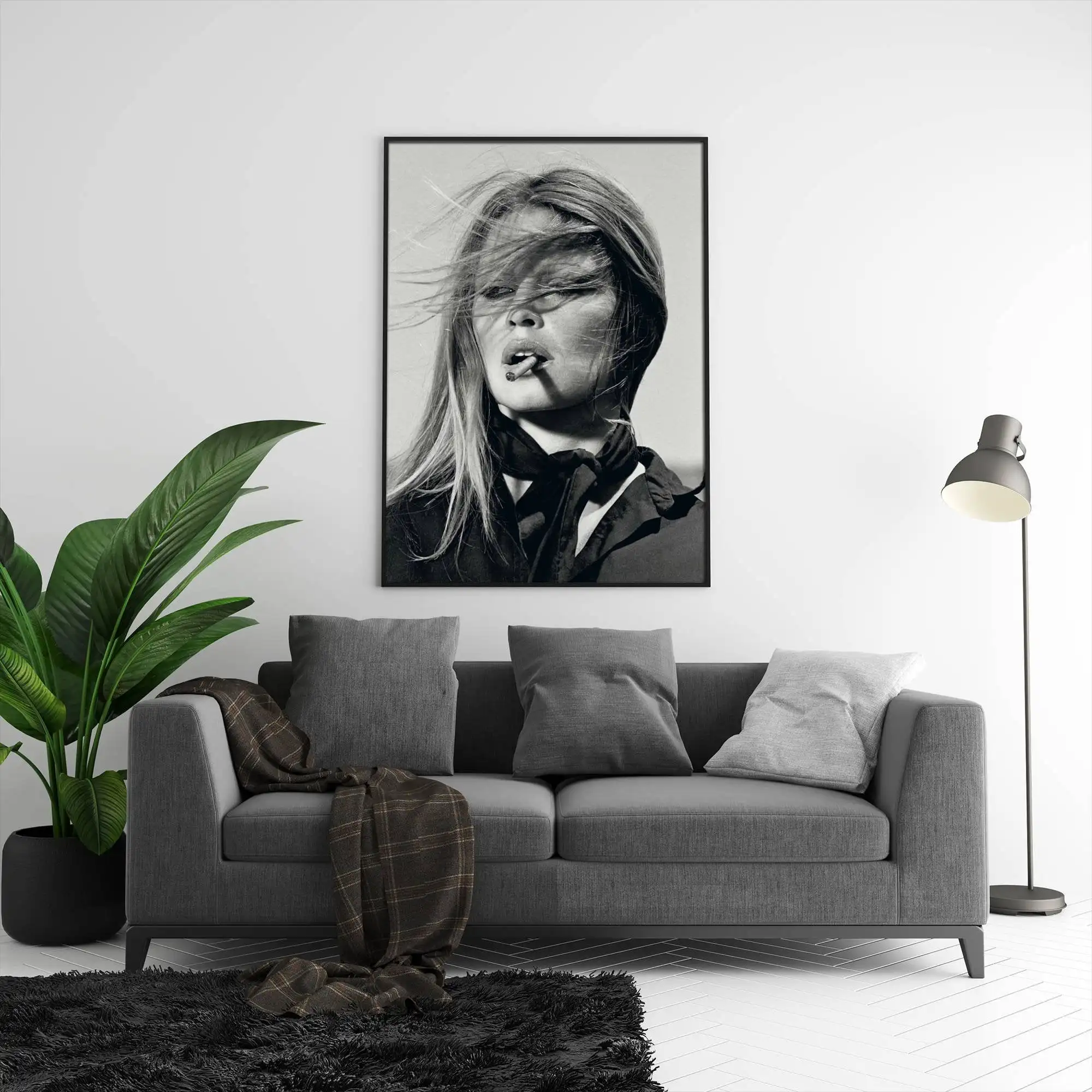 Привлекательная модель Бригит бардот с сигарой, искусство на холсте, серый плакат, настенная живопись, печать, современный дом, спальня, декоративное искусство