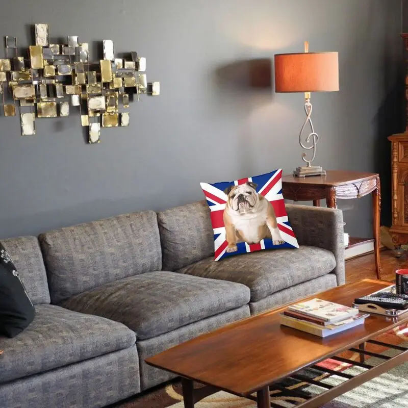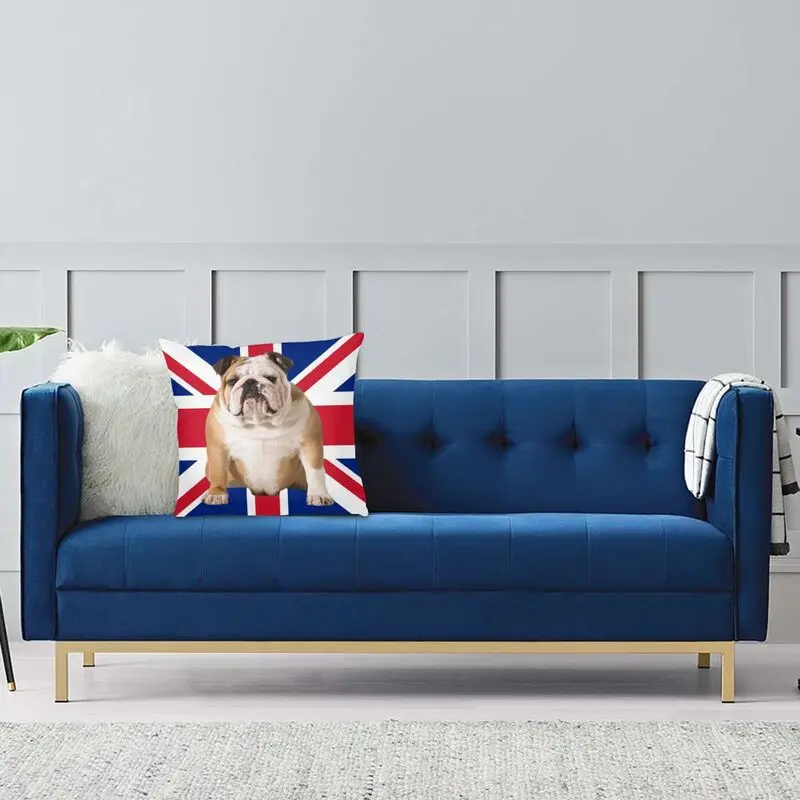 Квадратная подушка с британским флагом Union Jack, наволочка с изображением бульдога, домашний декор, модная наволочка, наволочка для гостиной