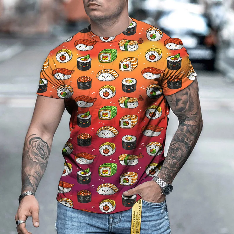 Футболка мужская летняя с 3D-принтом пиццы и мороженого