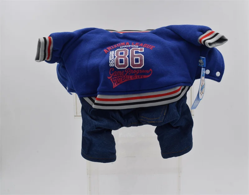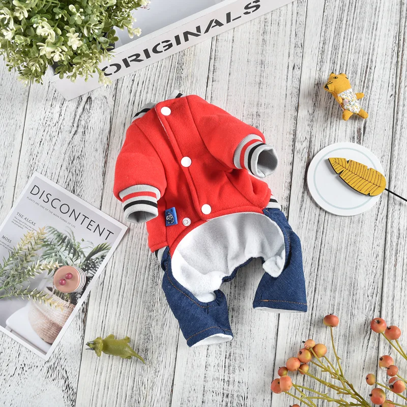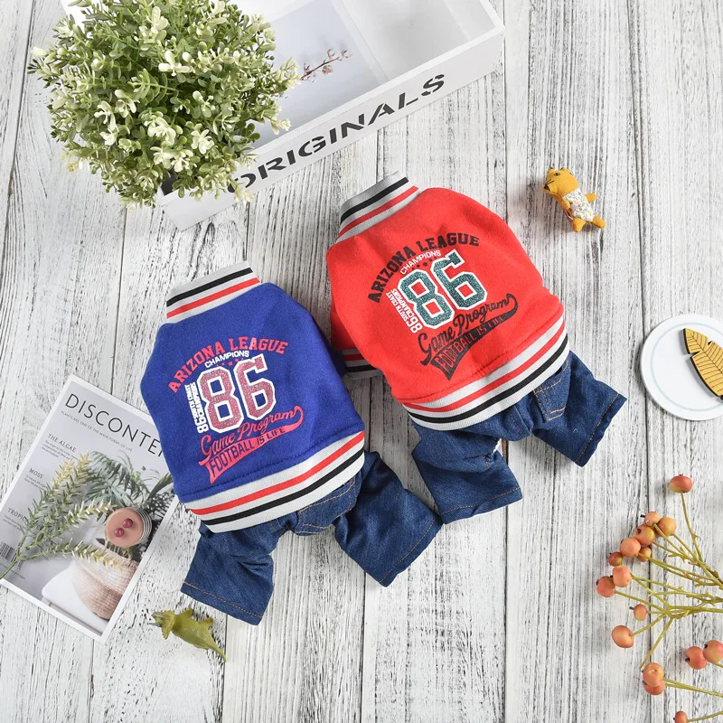 Комбинезон для собак с принтом в виде цифр, красный, синий цвет, теплый роскошный дизайн, одежда для собак, для зимы, бейсбольный стиль, костюм на четыре лапы для Йорка