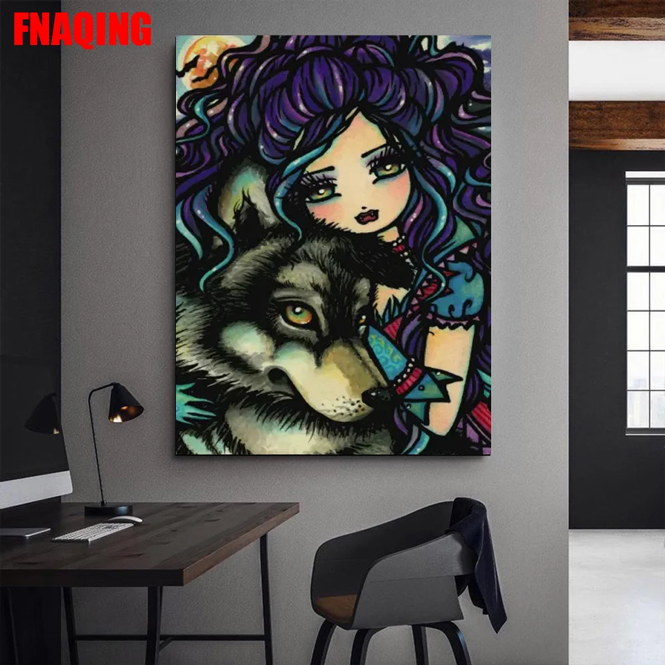 5D DIY Алмазная картина вышивка крестиком для девочек и волков Стразы Алмазная вышивка мультфильм девушка Картина декор для стен