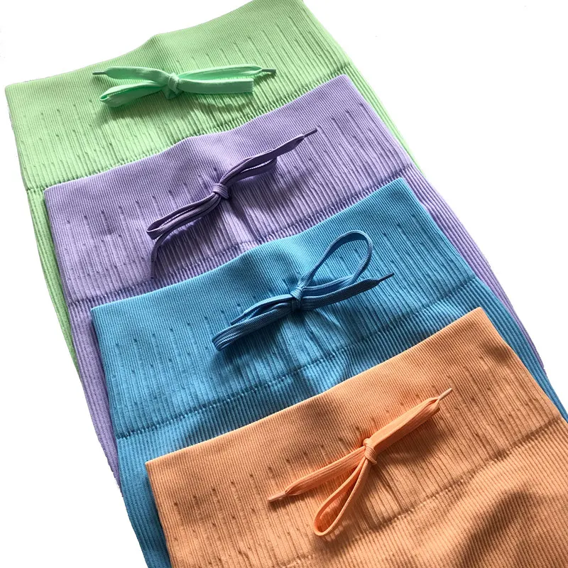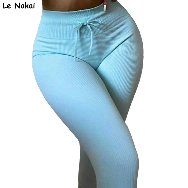 Леггинсы женские, ребристые, бесшовные, с завязками, для тренировок, спортзала, фитнеса, йоги