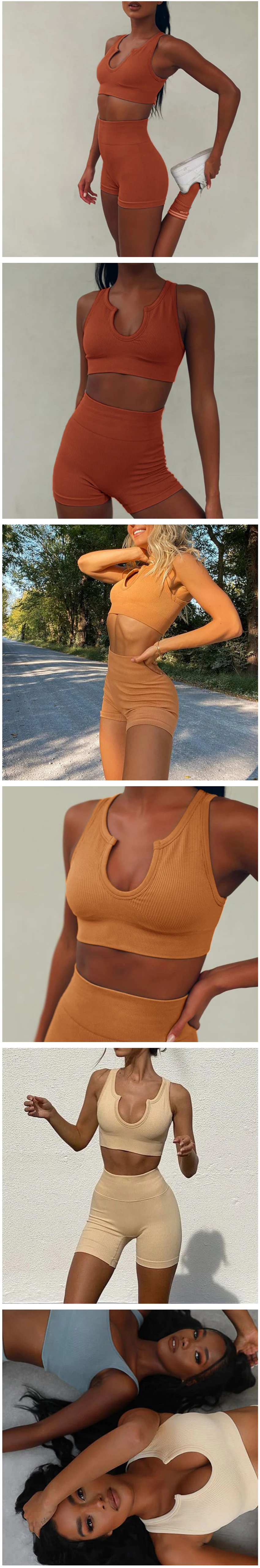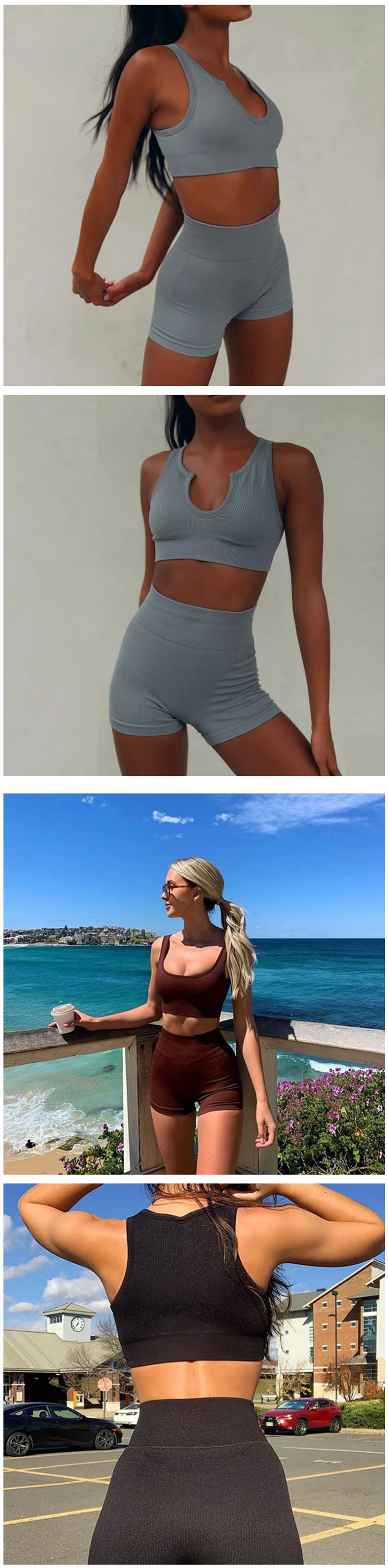 Спортивная одежда Женская, комплект из 2 предметов, в полоску, бесшовный, сексуальный, для тренажерного зала, тренировок, спортивный костюм с бюстгальтером + шортами, для йоги, спортивный костюм, одежда для фитнеса