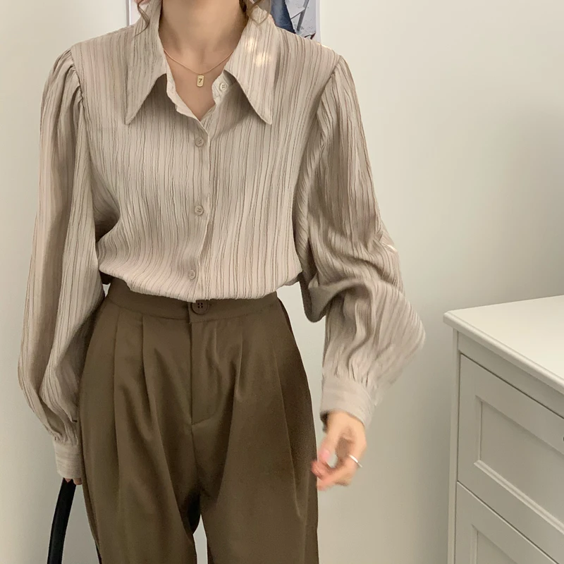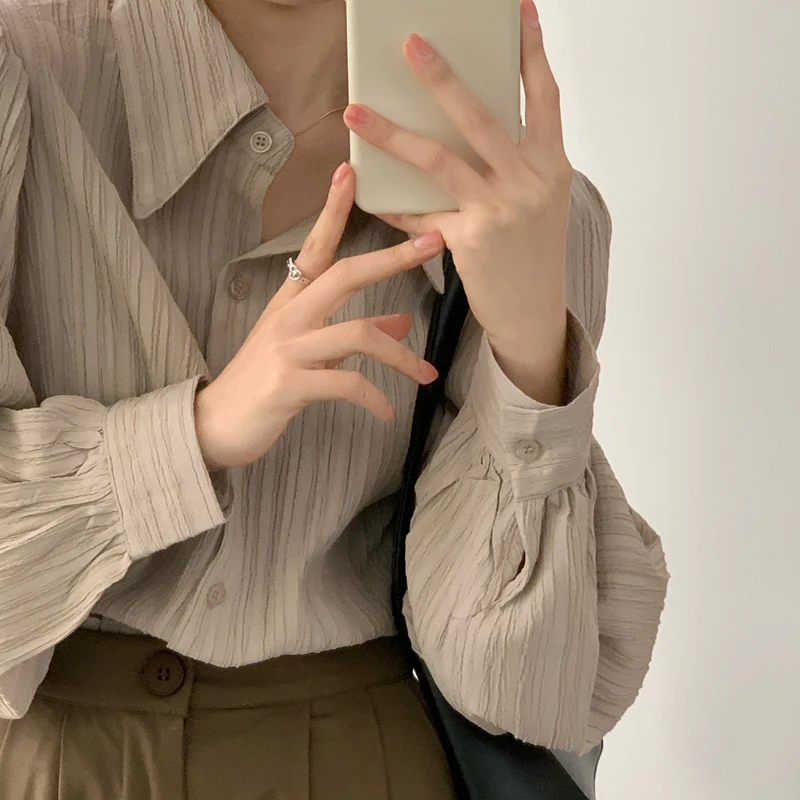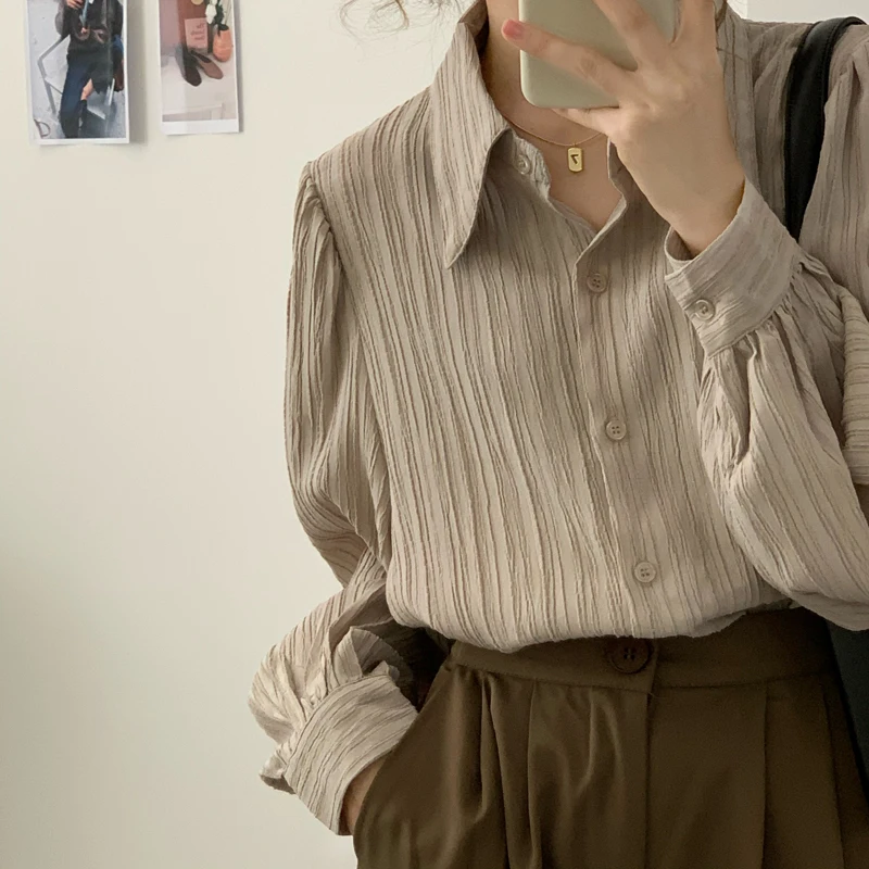 Рубашка Alien Kitty Женская в полоску, элегантный нежный топ с лацканами, Популярная свободная уличная одежда с длинными рукавами, Повседневная элегантная одежда на осень, 2021