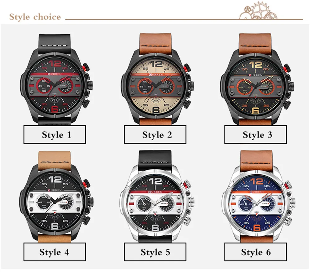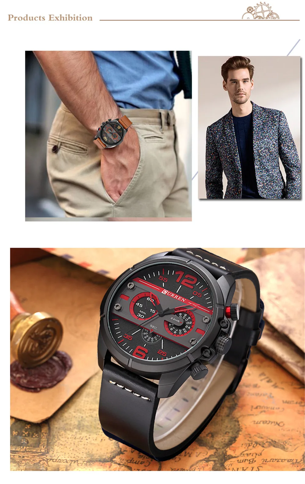 Часы наручные CURREN Мужские кварцевые, роскошные брендовые армейские спортивные, в стиле милитари, с кожаным ремешком, 8259