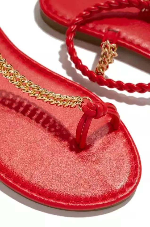 Сандалии женские плетеные с цепочкой, повседневные босоножки с плет...