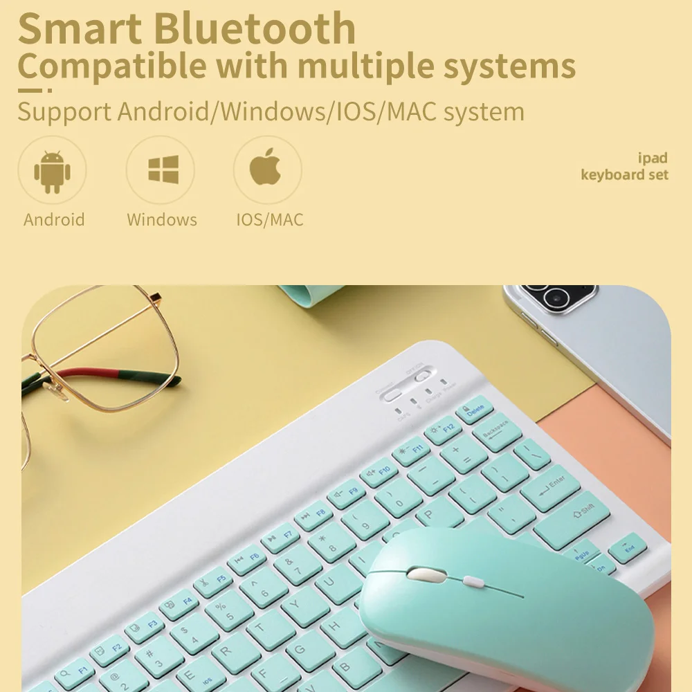 Беспроводная Bluetooth-клавиатура с английской раскладкой, перезаряжаемая клавиатура и мышь для планшетов Android, Samsung, Windows, Apple, Mac, iPad