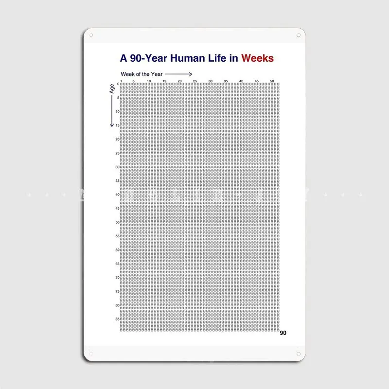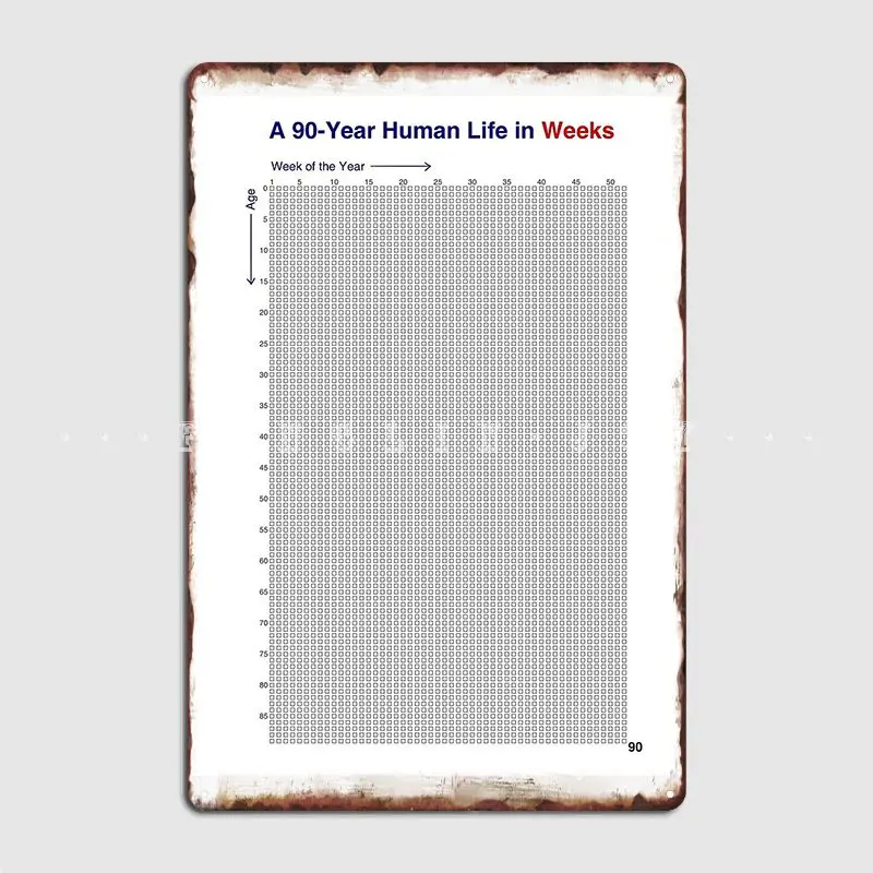 Плакат на 90 лет человеческой жизни за недели, металлический настенный плакат на стену, настенная пещера, кухня, персонализированный жестяной плакат