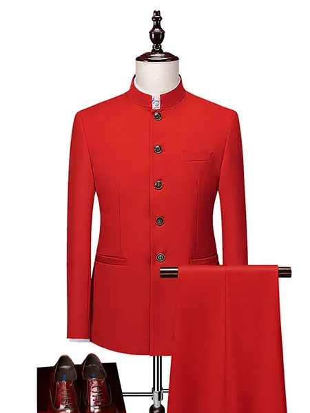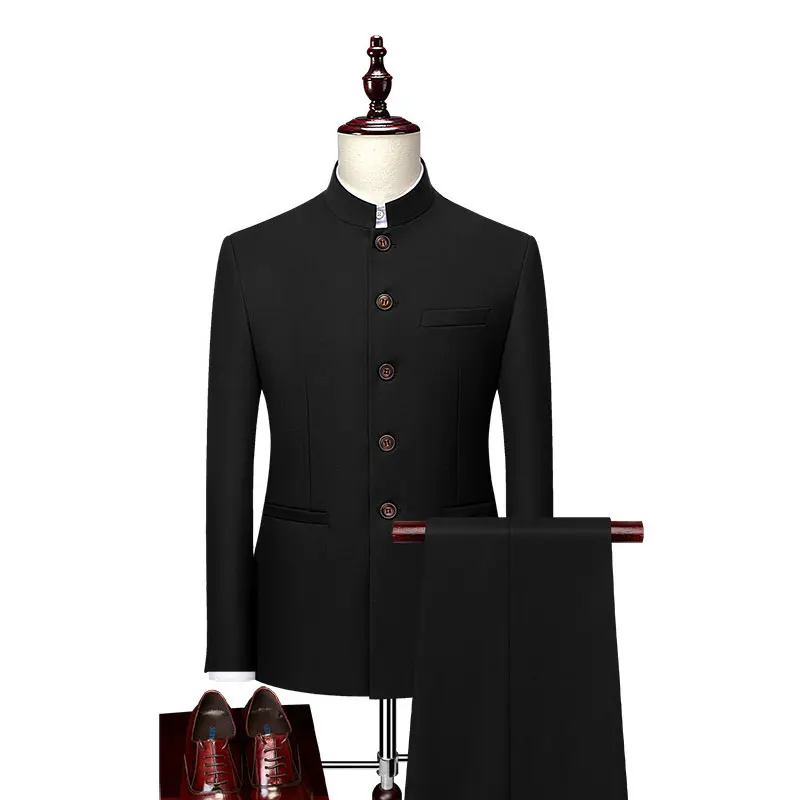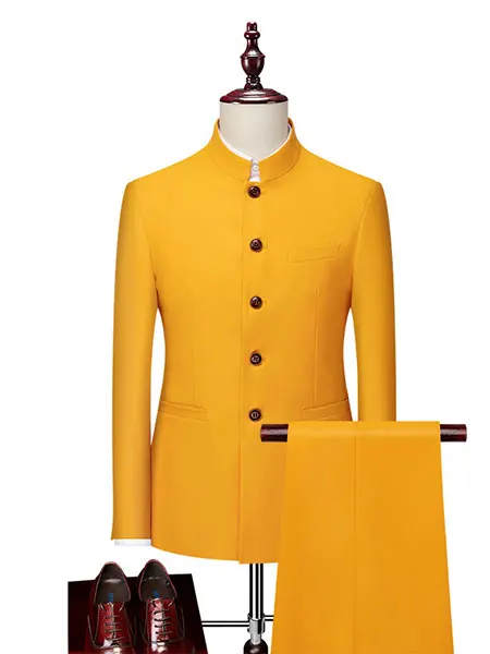 Новый костюм Zhong Shan Homme из 2 предметов, приталенный китайский костюм-туника с воротником-стойкой, роскошный свадебный Мужской Блейзер, модная Стильная мужская одежда