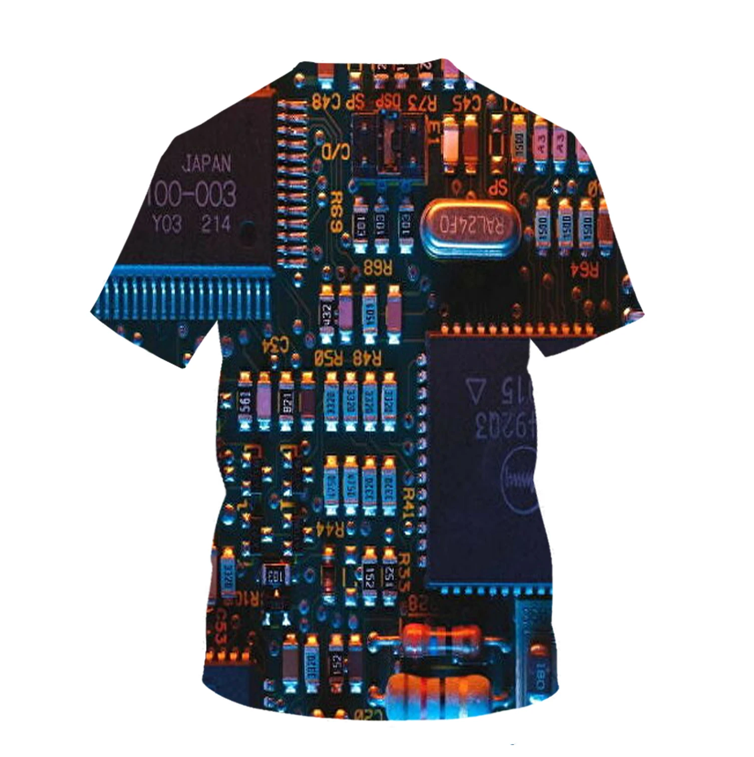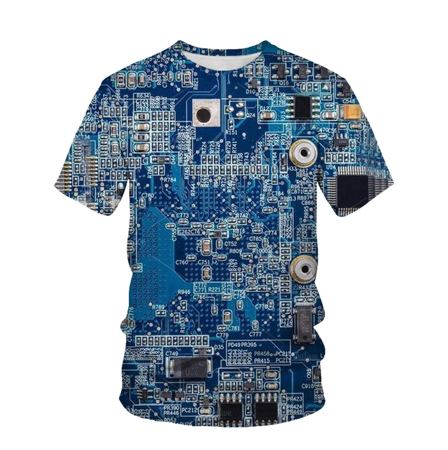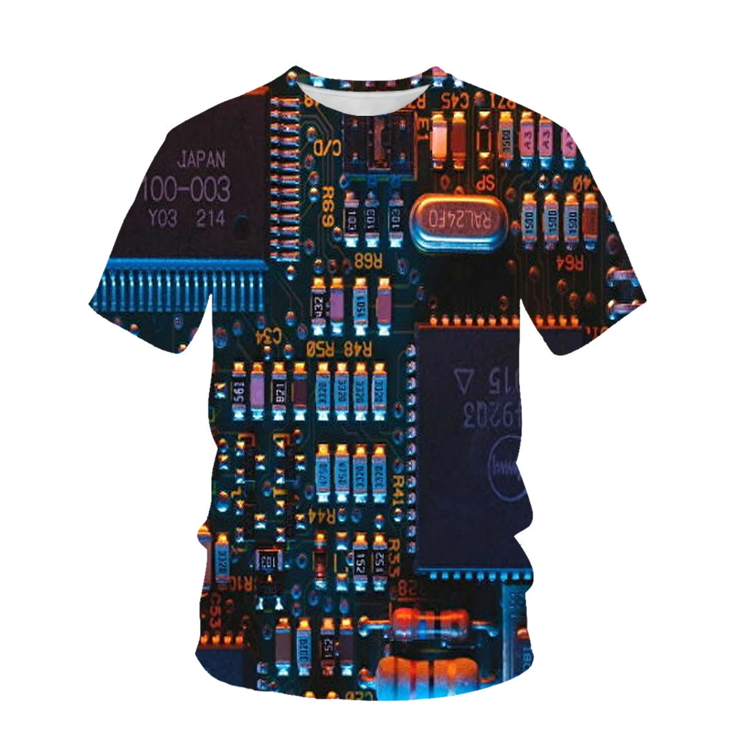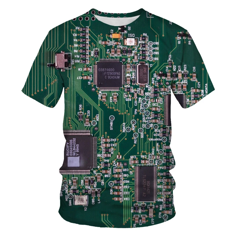 Летняя футболка с коротким рукавом для мужчин и женщин, футболка в стиле хип-хоп с 3d принтом электронных чипов, футболка в стиле Харадзюку, Топ оверсайз