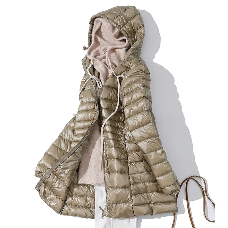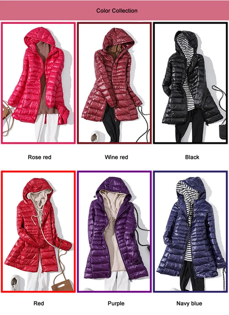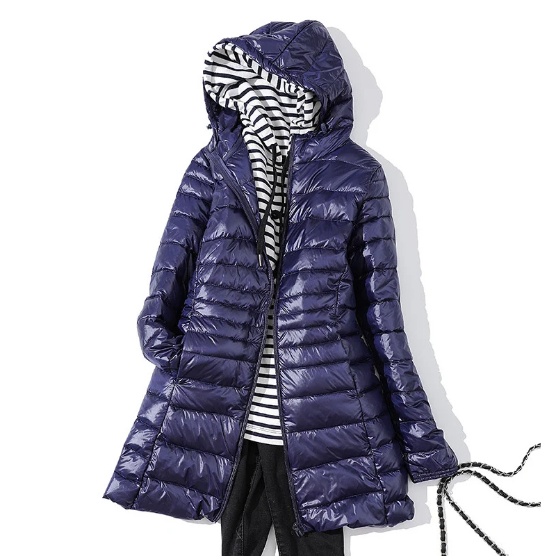 Пуховик женский ультралегкий на утином пуху, с капюшоном, 6XL 7XL