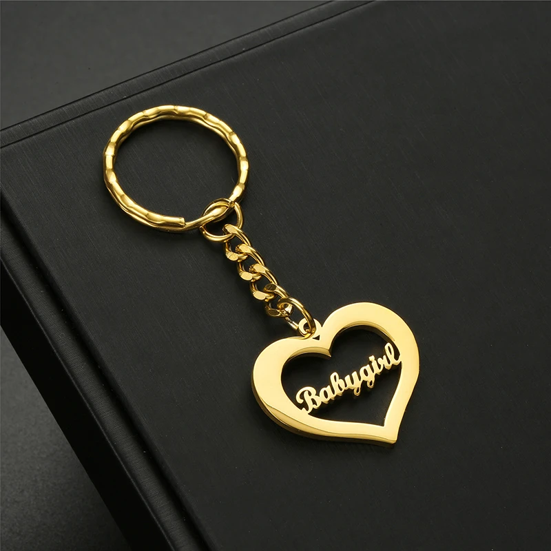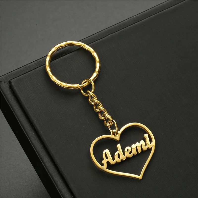 Цепочка для ключей с именем на заказ, цепочка для ключей из нержавеющей стали с кольцом, 25 мм, с подвеской в виде сердца, женский подарок