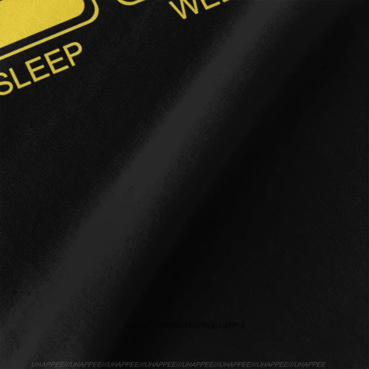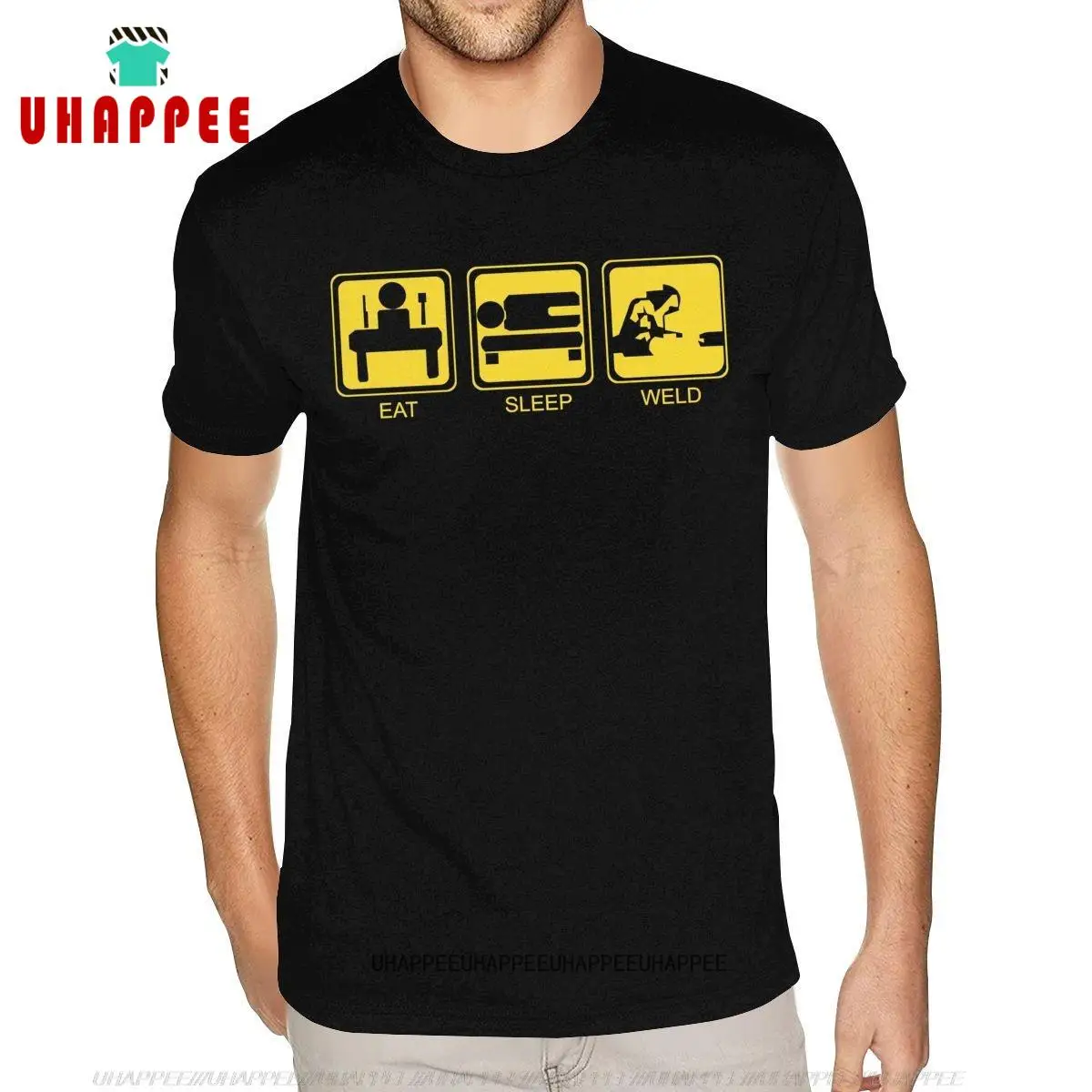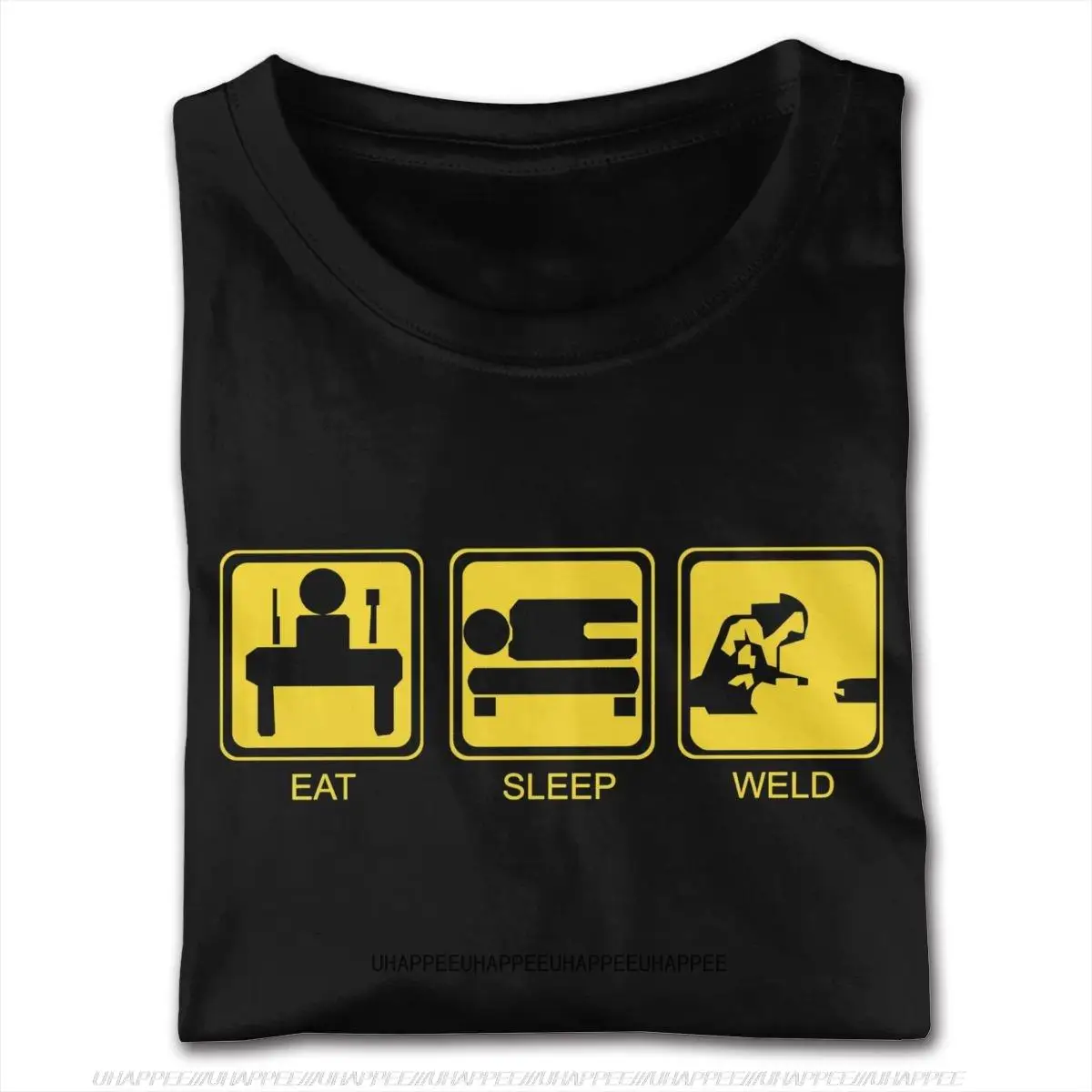 Желтая сварная забавная рубашка сварщика Eat Sleep Мужская Желтая Высококачественная хлопковая черная рубашка с круглым вырезом и коротким рукавом